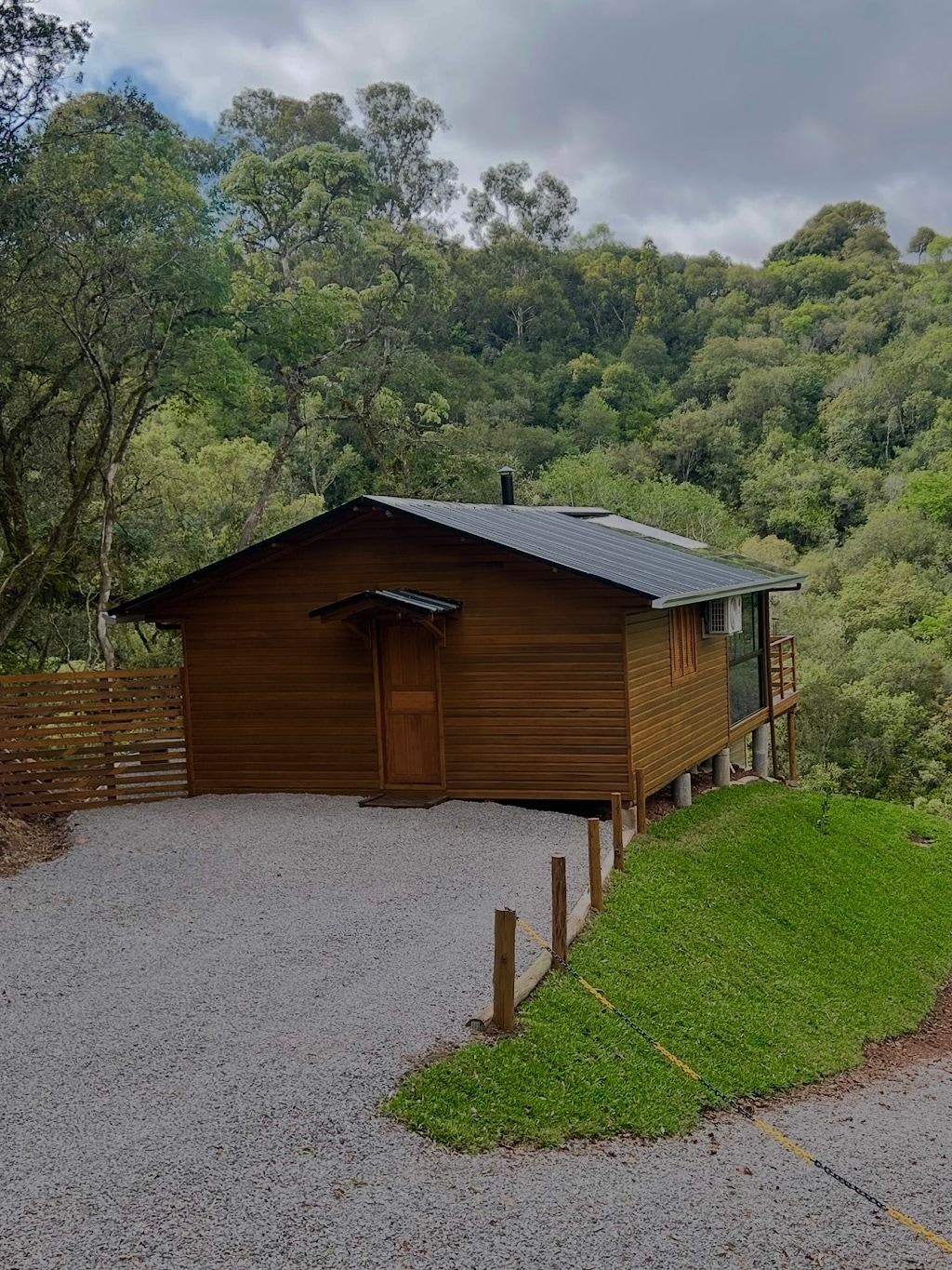 PREÇO PROMOCIONAL DE ABERTURA, inclui café da manhã. Cabana na Serra Gaúcha! Refúgio exclusivo com escadaria privativa para o rio, espaço para fogueira, banheira com vista e sala com TV. Cozinha completa, banheiro moderno e ambiente cercado pela natureza. Ideal para casais que buscam conforto, tranquilidade e momentos inesquecíveis. Desfrute do som do rio, do ar puro da serra e de noites estreladas ao redor da fogueira. Possui uma cachoeira que cerca a cabana, perfeito para passeios e fotos.