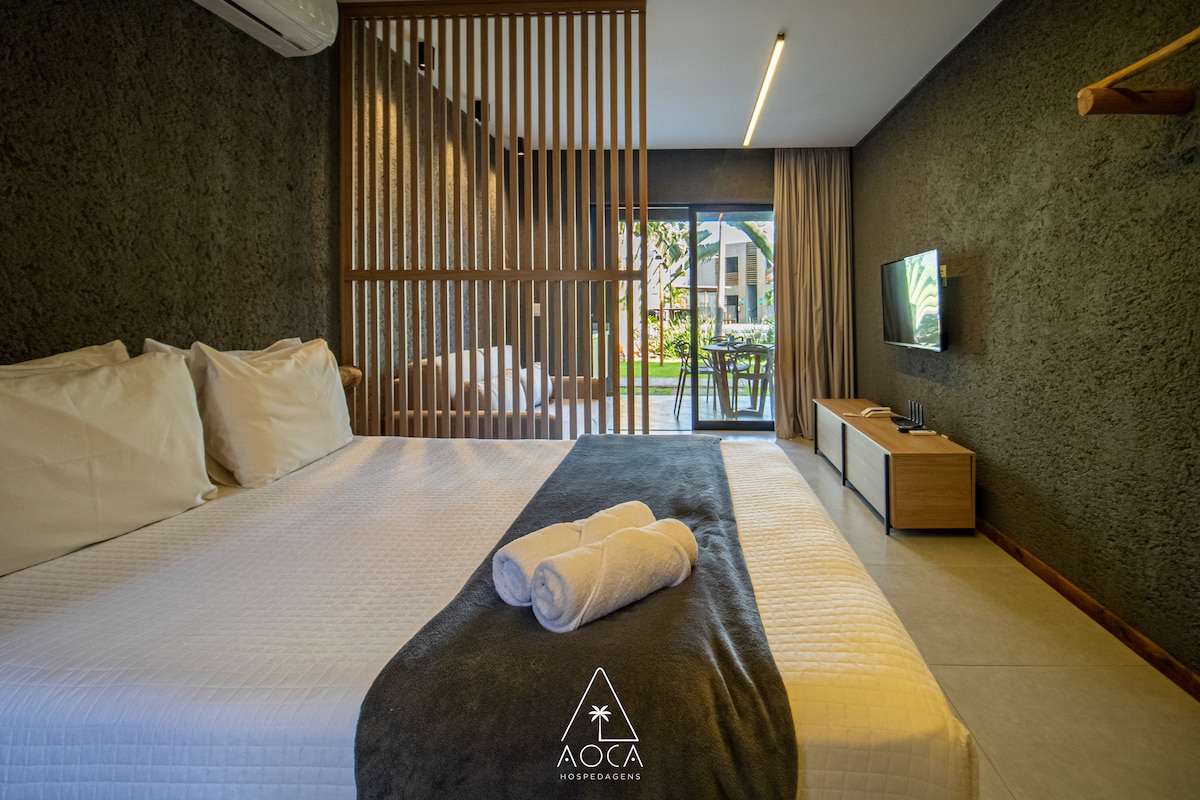 Una experiencia única, a pocos pasos de la playa más hermosa de Brasil. Espacio con encanto, nuevo, totalmente equipado para ofrecer días memorables en la Ruta de los Milagros. Inaugurado en octubre/2024, usted y su familia estarán entre los primeros huéspedes en conocer nuestro paraíso. Recepción 24 horas, loft con aire acondicionado, Smart TV, ropa de cama nueva de 650 hilos, balcón gourmet, piscinas para adultos, niños y jacuzzi, kit de playa y diversión. ¡Prepare el protector solar y sea bienvenido!