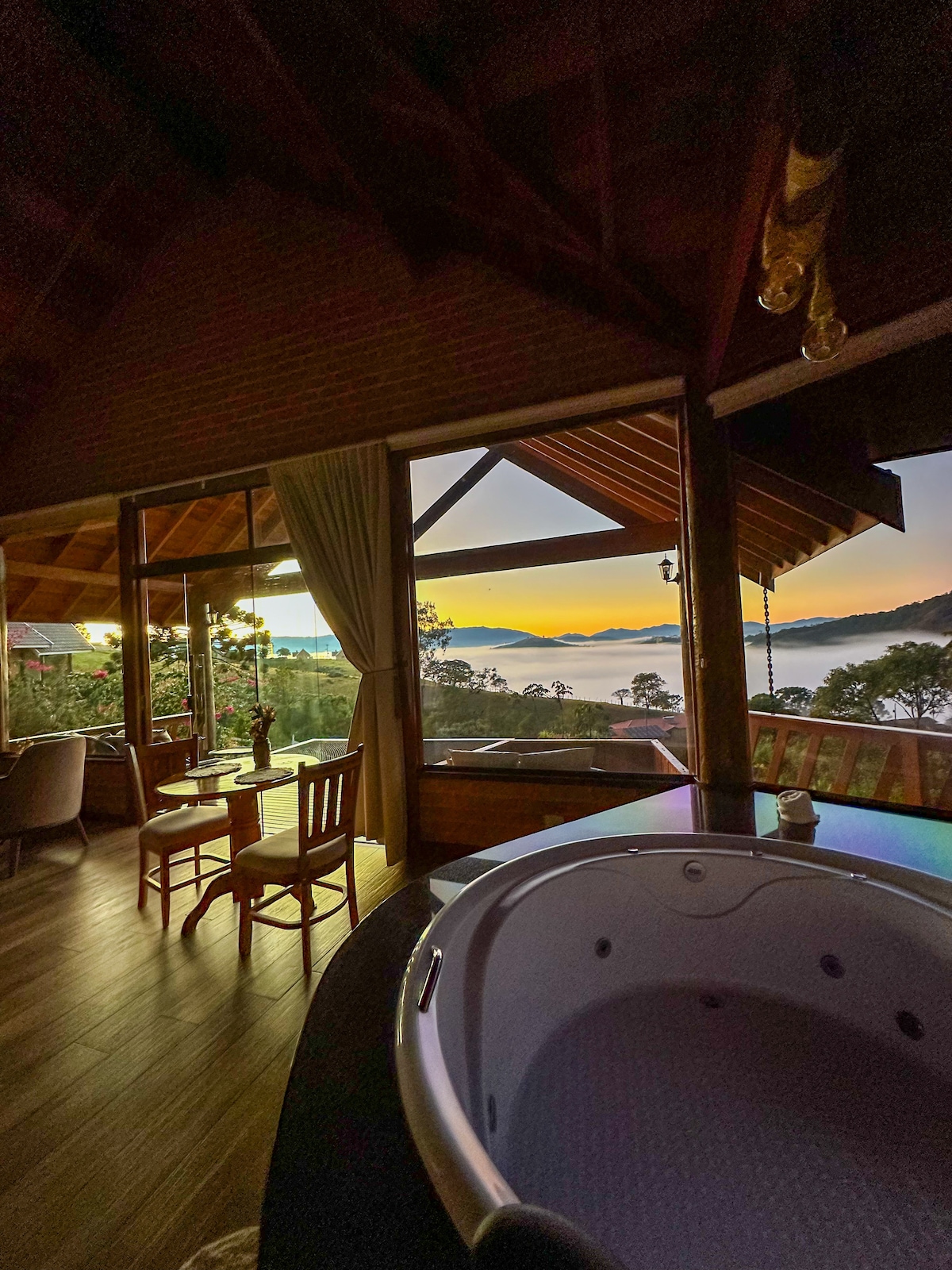 Romántico chalet, ubicado en Santo Antônio do Pinhal, ofrece una vista deslumbrante de las montañas. Ideal para celebraciones especiales o para aquellos que simplemente quieren escapar de la rutina y reconectarse con la naturaleza. El espacio es acogedor y cuenta con un lujoso hidromasaje, una cómoda cama queen-size y un juego completo de ropa de cama y baño para brindar el máximo confort a los huéspedes.