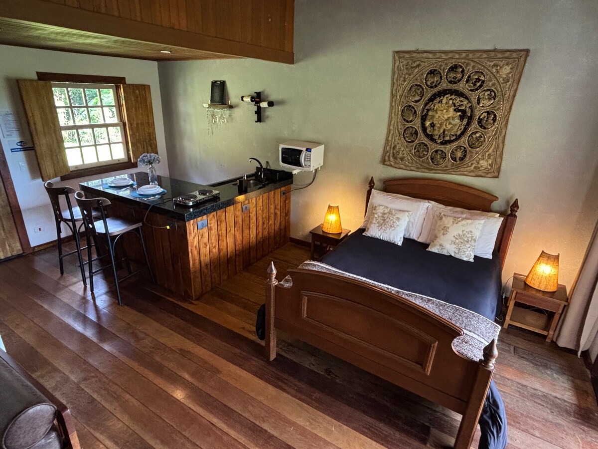 Situado en el corazón de Mantiqueira, es el destino perfecto para una escapada romántica. Aire acondicionado, calefacción, cama tamaño queen, bañera doble grande, televisor inteligente de 55 pulgadas, terraza, fogata y espacio para microondas, todo para darte la bienvenida con total comodidad. Varias opciones para excursiones, senderismo y excelentes restaurantes. Junto al olivar Azeite Veroli, la bodega Villa Santa Maria y la bodega Raízes do Baú. A solo 29 km de Campos do Jordão y a 180 km de São Paulo. ¡Te estamos esperando!