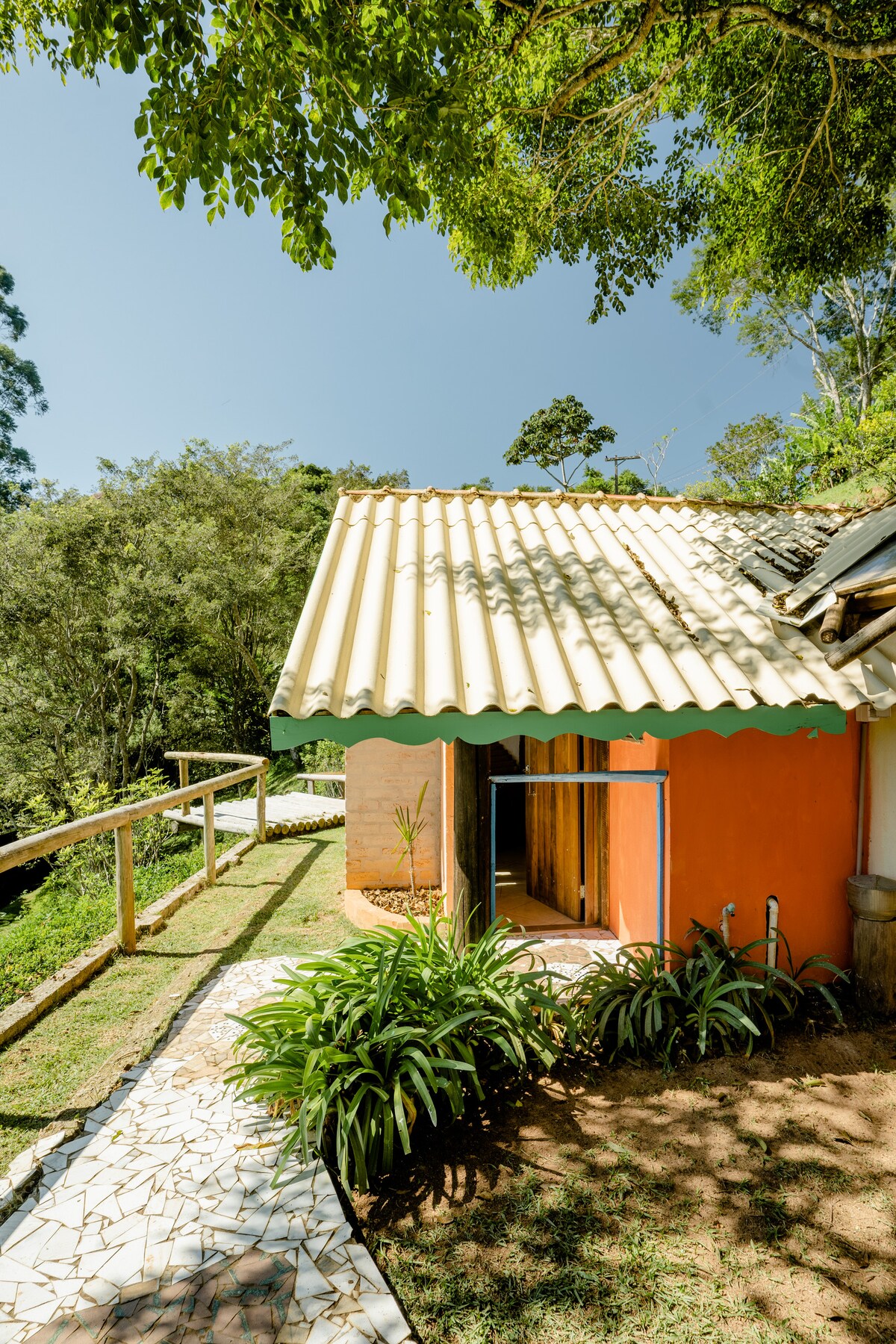 LA CASA DE CAMPO El refugio es de total exclusividad del huésped, tenemos una única cabaña rústica, con un patio cercado y una amplia terraza, con hamaca y columpio para relajarse y escuchar el sonido de las aguas del río y de los pájaros, desde el área del columpio tendrá acceso a un pequeño sendero al río, río con una pequeña cascada, exclusivo para que pueda relajarse con su familia tranquilamente. Aquí vives momentos únicos en contacto con la naturaleza, te reencuentras, te conectas con lo que importa. Aquí hay amor, historia.