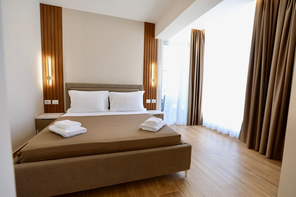 ¡Bienvenido a tu escapada perfecta! Disfruta de una habitación totalmente renovada con una decoración moderna y comodidad hogareña. Sal a una impresionante piscina con impresionantes vistas a la ciudad y al mar, perfecta para relajarse. Comienza tus mañanas con un desayuno tradicional albanés de cortesía, recién preparado solo para ti. Ya sea que estés aquí para relajarte o explorar la belleza de Saranda, nuestro espacio cálido y acogedor garantiza una estadía inolvidable. ¡Tu comodidad es nuestra máxima prioridad!