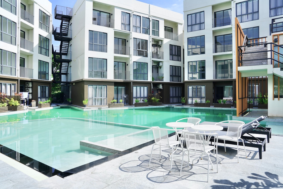 Cerca del aeropuerto y centro comercial | Lujo 2 dormitorios | Vista a la piscina