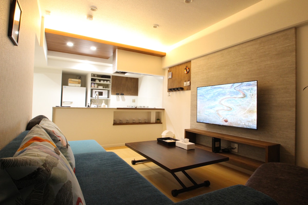 Disfruta de tu estadía en un alojamiento elegante con una sala de estar privada donde puedes reunirte con todos tus familiares y amigos. El hotel está convenientemente ubicado a 5 minutos en taxi del vuelo internacional del aeropuerto de Fukuoka, a 5 minutos de Lalaport y a 7 minutos de la estación de Hakata, por lo que es perfecto para hacer turismo en Fukuoka. Instalaciones cercanas Seven-Eleven a 1 minuto. Don Quijote a 6 minutos a pie. Estación de Hakata a 10 min. en autobús Estacionamiento que funciona con monedas disponible junto al apartamento (700 yenes durante las primeras 24 horas)