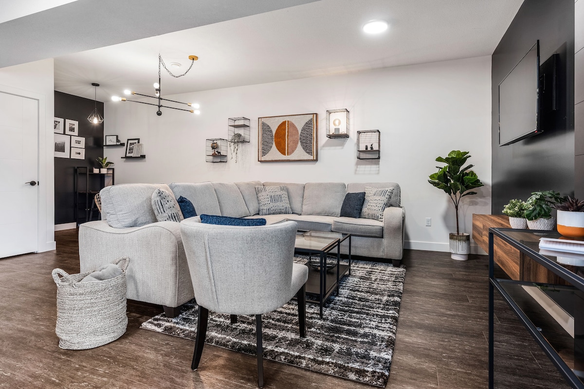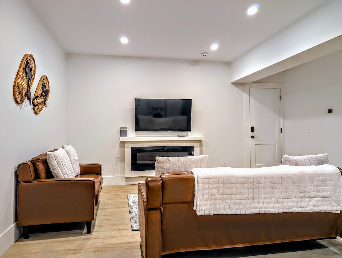 Disfruta de una experiencia de lujo en este céntrico alojamiento. Capacidad para 4 personas cómodas (cama tamaño queen, un sofá plegable tamaño queen, colchón de aire doble), TV inteligente de 55 pulgadas/wifi gratuito/TV Box (todos los deportes, películas, Netflix), barra de sonido bluetooth (sala de estar y baño), juegos de mesa, chimenea de leña, barbacoa. Esquí en esquí fuera/pub/restaurante a poca distancia, hermosas caminatas, ciclismo de montaña, todoterreno, excelentes vistas y lagos cercanos, piscina (temporada de verano)/bañera de hidromasaje/sauna (todo el año), sala de servicios y sala de juegos.