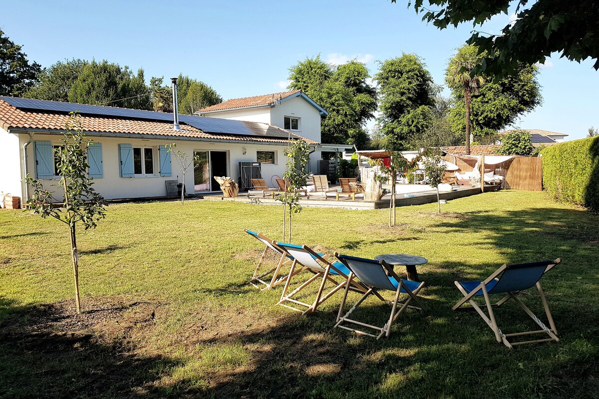 Bienvenido a nuestra luminosa y moderna villa con piscina privada, dos jardines soleados y un amplio techo de 4,5 metros de altura en la sala de estar. Las grandes puertas correderas se abren completamente a ambos jardines, creando una experiencia de vida interior-exterior perfecta. Ubicada a solo 12 minutos de las playas y lugares de surf de Hossegor, nuestra casa ofrece el equilibrio perfecto entre la naturaleza tranquila y el fácil acceso a restaurantes, cafés y tiendas.