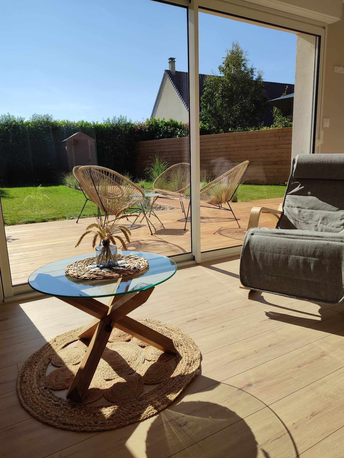 alojamiento independiente de 70 m2, amplia habitación con una cocina equipada y que ofrece una agradable sala de estar con vistas a una terraza de 30 m2 lista para darle la bienvenida para relajarse, hay 2 dormitorios cada uno con una cama de 2 personas 160x200, ropa de cama y toallas están disponibles bicicletas están disponibles (bicicletas hombres, mujer, así como un remolque para niños), cerca de Berck, la bahía de somme, montreuil sur mer, muchas actividades para hacer cerca del alojamiento