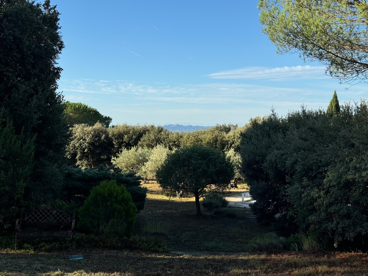 Villa en el bosque, vistas a los Alpilles y piscina en la Provenza