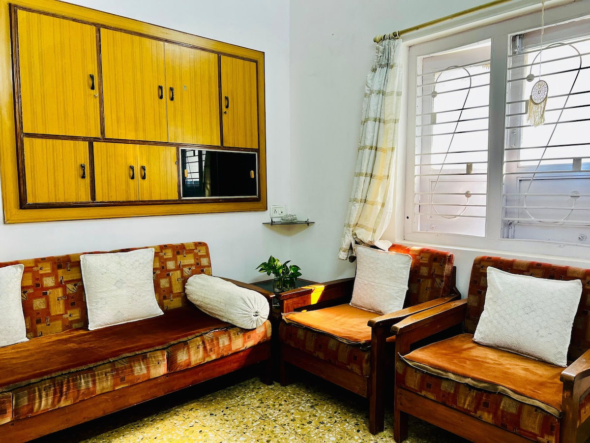 🌿🏙️ Amplio apartamento de 2 dormitorios y cocina en Ahmedabad con aire acondicionado (en un dormitorio principal), ideal para estancias cortas de 1 noche a 1 semana. Perfecto para familias, parejas y huéspedes corporativos. Ubicado en Narol, Ahmedabad con conectividad fluida a Vatva, Isanpur, Maninagar y aprox. 20 km del aeropuerto de Ahmedabad. Disfruta de habitaciones amplias, luz natural, ropa de cama de estilo de piso y un diseño tranquilo y sin desorden, una alternativa cómoda a los hoteles. Gestionado de forma remota para facilitar el registro de entrada y la privacidad completa.