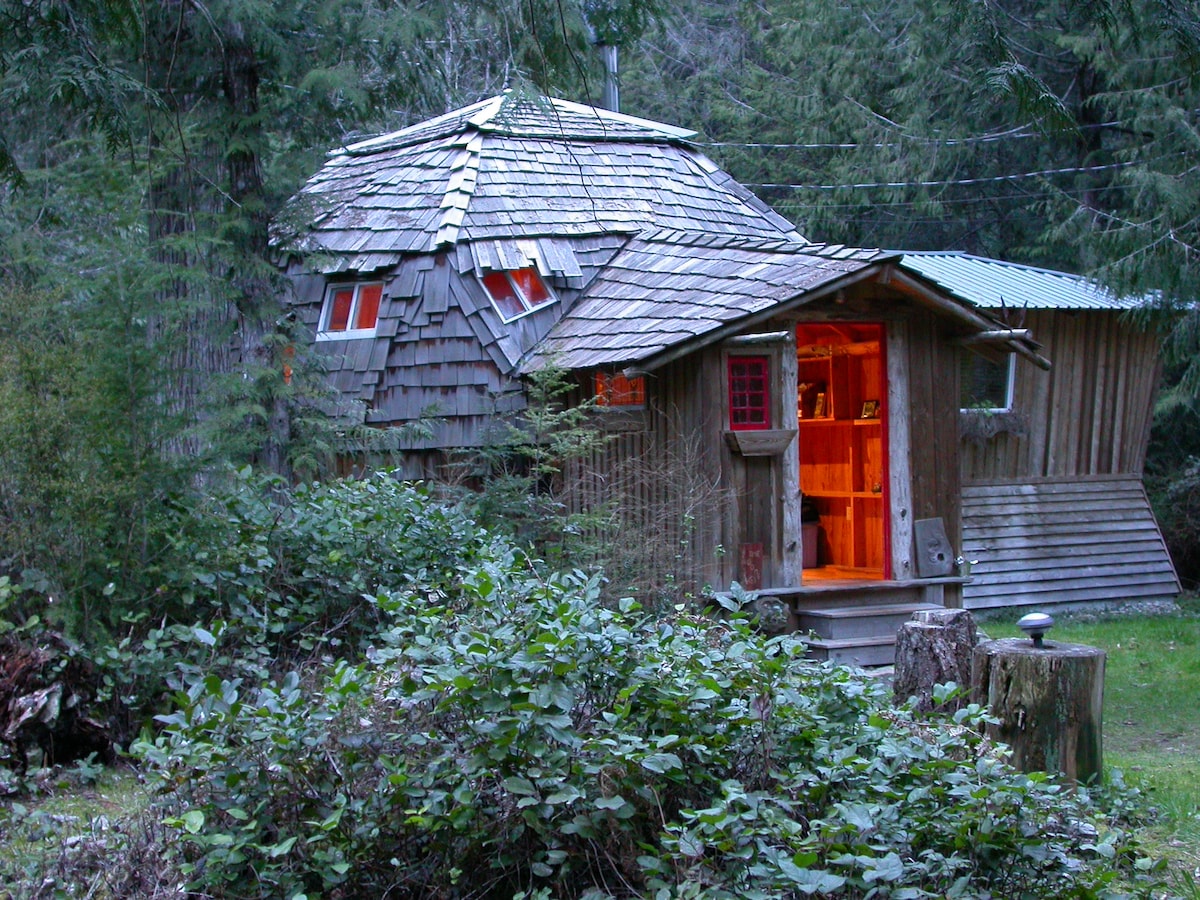 Escapada en barco curvado junto a Helliwell Park, con vistas al parque, en las praderas de robles con espectaculares vistas abiertas al sur y la playa debajo. Destacado en constructores artesanales del noroeste del Pacífico. Piedra, cedro, acero inoxidable, madera flotante y césped. La casa es mejor como escapada para 2 personas con invitados ocasionales en dormitorios separados. Todas las comodidades más una chimenea, suelos de piedra calefactados y bañera exterior. Observa las tormentas o la luna llena desde el dormitorio.