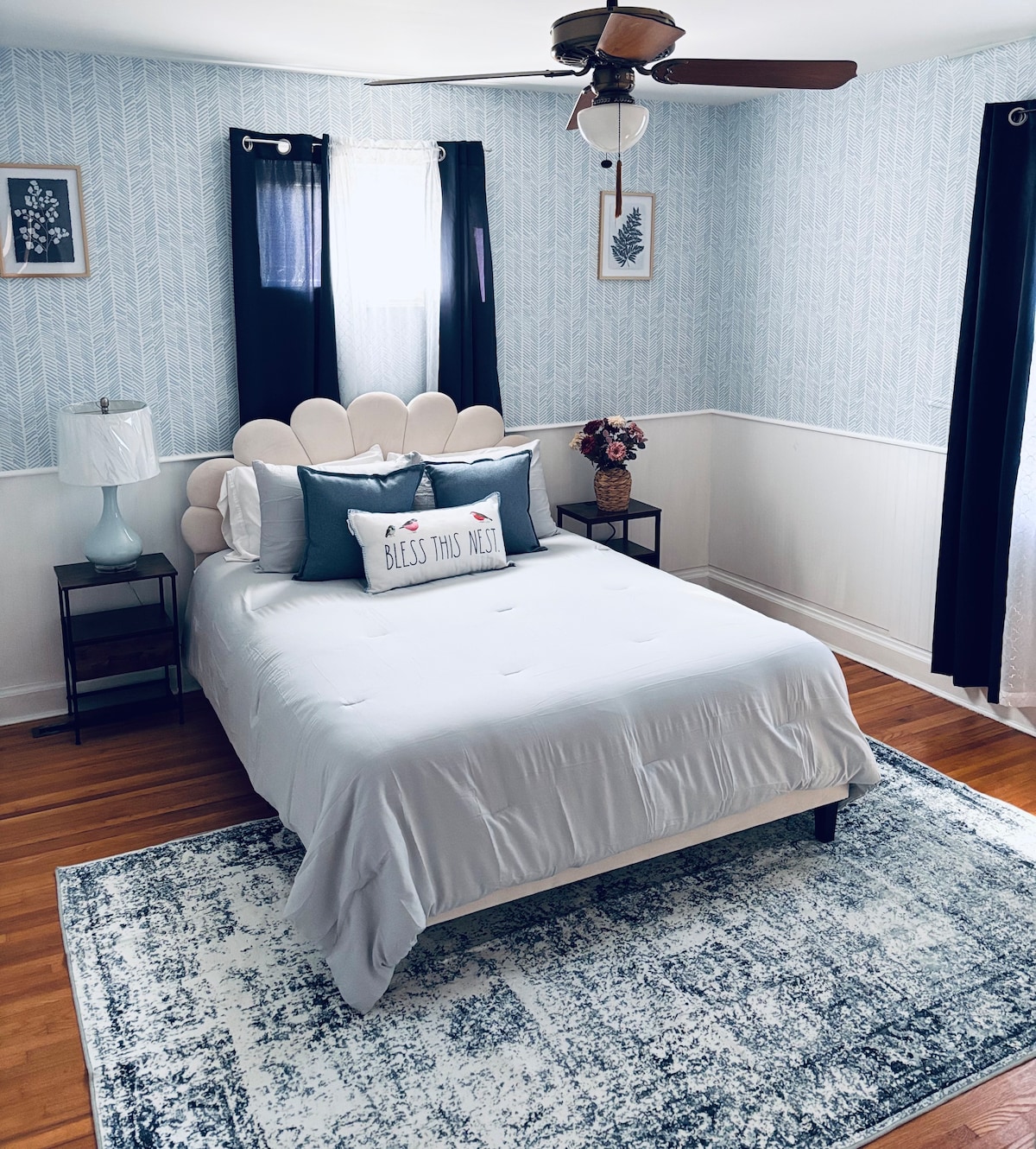 Cleaning fee included. Fully furnished home in Spartanburg 2 bedrooms queen beds, 2 full bathrooms, 50" SmartTV in living room and 43" in upstairs bedroom with cable and WIFI access. Nice driveway fenced back yard, no back door inside the house. Great place for quick getaway to Spartanburg, Greenville or surrounding areas, great for business people traveling or visiting family in the area. Note there are crowing roosters in the back of house not mine. Sound machine in bedrooms, ear plugs.
