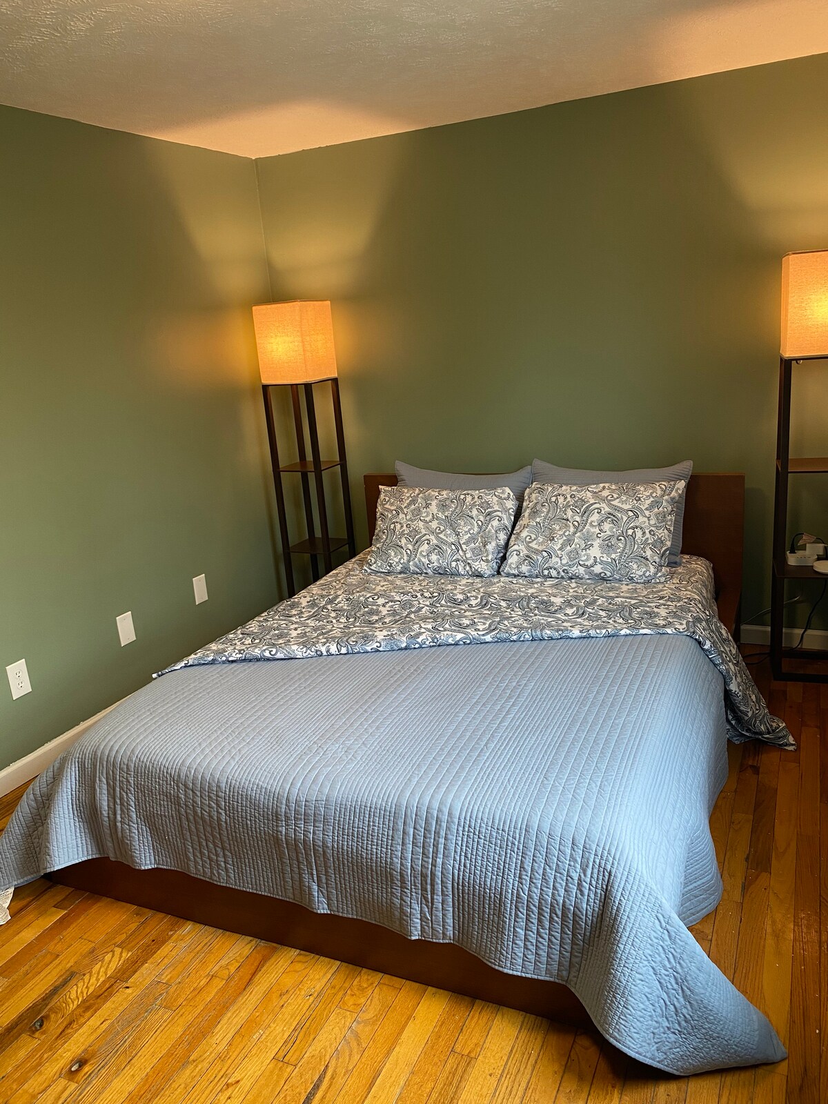 Junto al corazón del campus de la UIUC y rodeada de árboles maduros, esta espaciosa y serena suite de invitados ofrece una estancia relajante. Tiene una entrada privada con un vestíbulo, una habitación principal de estilo estudio y un baño. Duermen dos cómodamente con una cama tamaño queen y un sofá (no extraíble) para descansar. No hay TV, lavadora ni secadora. No hay cocina, pero se proporciona un microondas, una mininevera y una cafetera. Aperitivos y cápsulas de café incluidas. No accesible para movilidad limitada. No se permite hacer fiestas ni fumar.