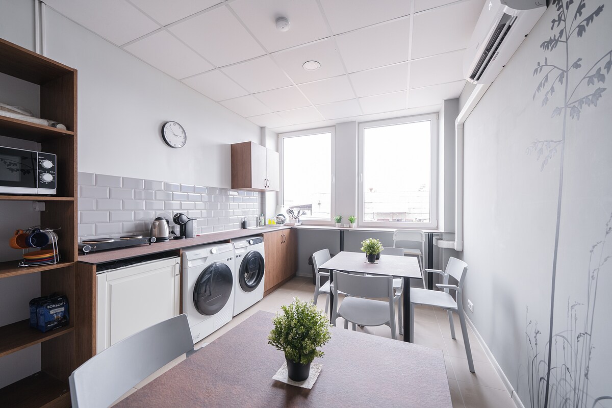 🌆 BOLD.Stay – stiilne peatuspaik Tallinna südames! 🔑 Naudi mugavust ja vabadust iseseisva sisseregistreerimisega. 🛌 Hele ja hubane tuba 1–2 külalisele, kiire ja tasuta Wi-Fi, töökohad ja kaasaegne interjöör. 🖤 Kasutada on ühine köök, vannitoad ja pesumasin/kuivati. 🏠 Asume Tallinna kesklinnas, “Keskturg” peatuse juures – Vanalinn, kohvikud ja poed on vaid mõne minuti kaugusel. ✨ Mugav, puhas ja taskukohase hinnaga hosteli privaatne tuba – tunne end nagu kodus!