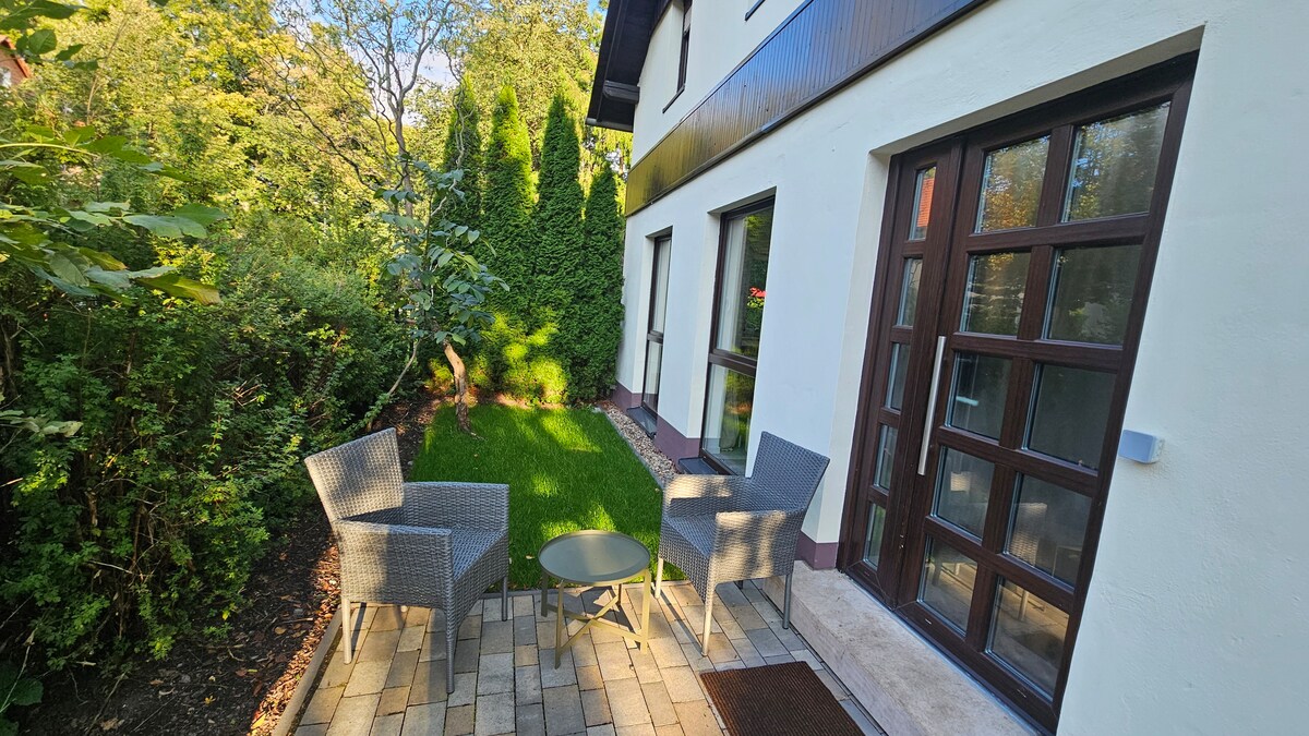 Mi apartamento muy bien equipado es ideal para 2 personas, si es necesario, se puede preparar rápidamente otro lugar para dormir en el sofá cama de la sala de estar. En nuestro televisor inteligente pongo a su disposición NETFLIX, para los días de lluvia y las noches de relax en el sofá :) Vivo tranquilamente, justo al lado del bosque, donde comienzan hermosas rutas de senderismo. Para los viajeros de negocios hay suficientes instalaciones disponibles. 1 cuna de viaje y 1 trona están disponibles para un pequeño huésped.