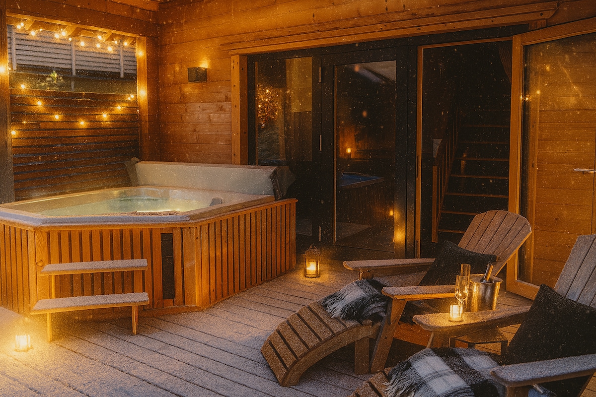 Vacaciones en el paraíso de senderismo, vistas de ensueño, sauna