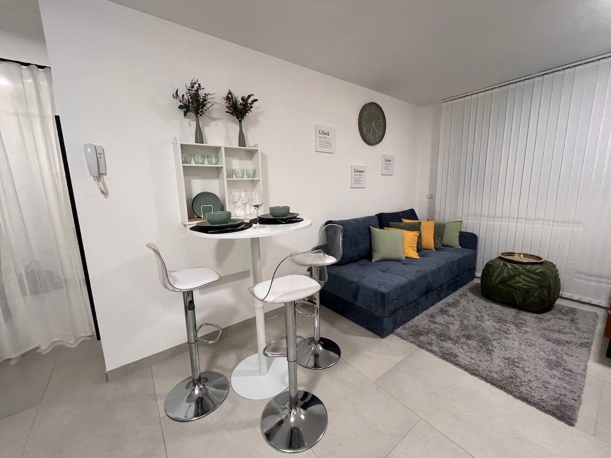 Bienvenido a nuestro estudio en el centro de Wiener Neustadt, a pocos pasos de la catedral, el encantador casco antiguo, el Landesklinikum y el campus de la ciudad de la universidad de ciencias aplicadas. La propiedad de 50 m² ofrece un balcón frente al tranquilo patio, la decoración elegante y el check-in autónomo hacen que tu estancia sea muy agradable. El estudio es ideal para 2 personas, pero un sofá cama de alta calidad (2 m x 1,4 m) también puede alojar hasta 4 huéspedes.