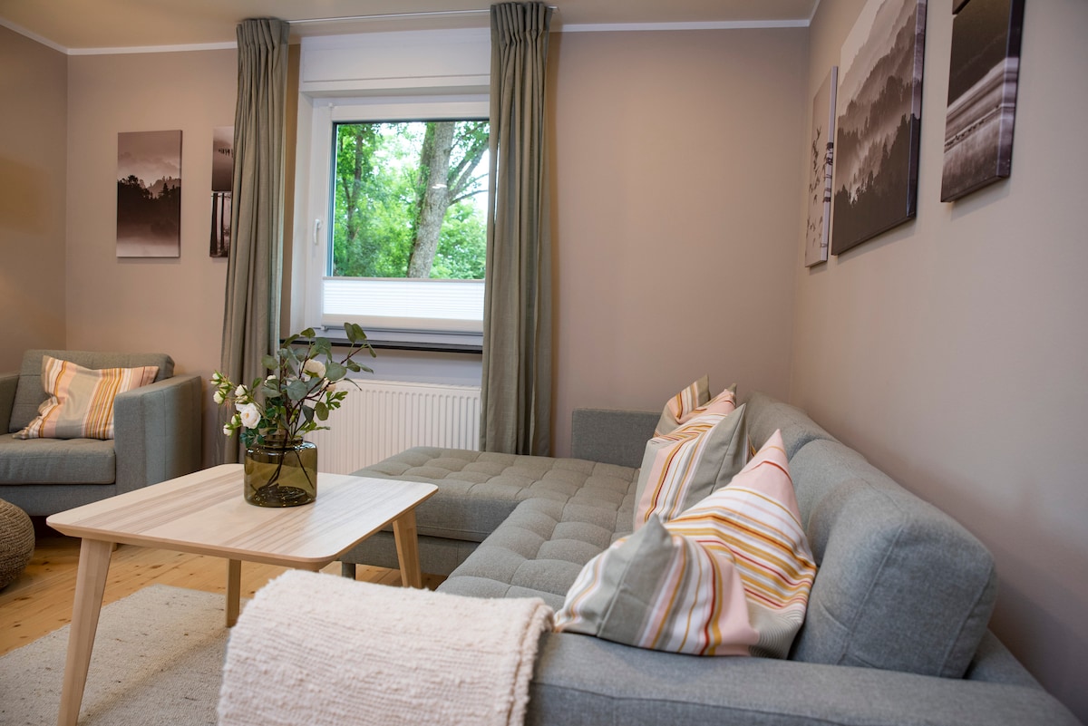 Bienvenido a nuestro encantador apartamento nivelado con su propia entrada a la casa, perfecto para una estancia relajante. La propiedad ofrece todo lo que necesitas: una cocina totalmente equipada, TV por cable, así como wifi gratuito para relajarse por las noches o trabajar desde casa. Un punto culminante especial es el prado adyacente con cenador, ideal para un desayuno acogedor al aire libre. Ya sea para un fin de semana o una estancia más larga, aquí puedes sentirte como en casa.