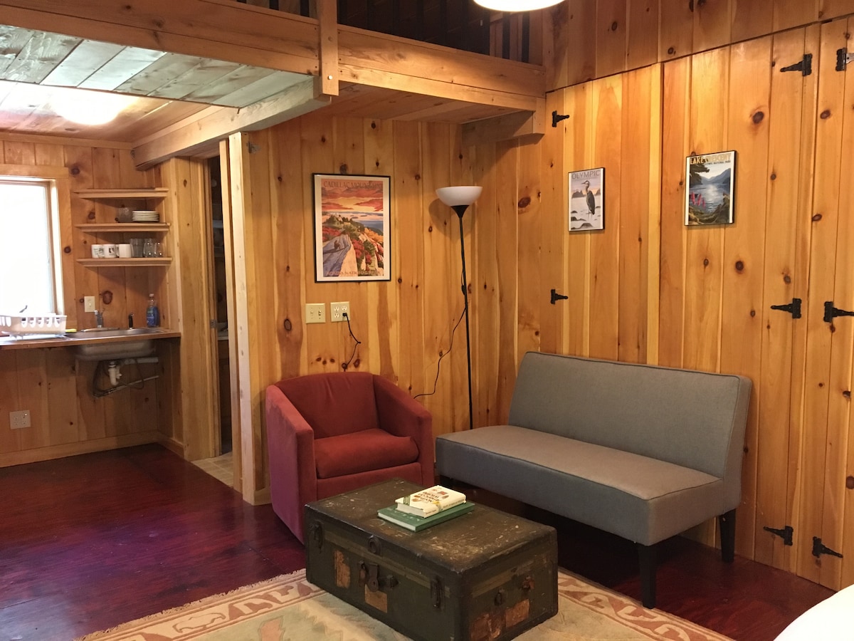Entrarás en un apartamento estudio grande, lujoso y privado en un hermoso estilo de artes y oficios. * Ubicado en una carretera apartada junto al lago, en el lado este del lago Seneca. * Techos artesonados de diez pies. * En la Ruta del Vino del Lago Seneca. * Damos la bienvenida a los visitantes durante todo el año. Una opción maravillosa para parejas que buscan un lugar privado y tranquilo para escapar. * Muchos detalles hechos a medida. * Se pueden alojar 2 huéspedes adicionales con un sofá cama plegable (con cargo adicional).