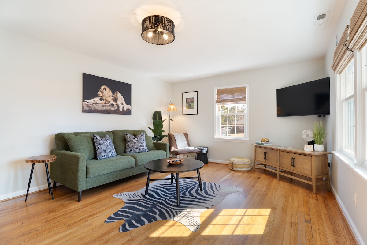 Lo que les encanta a los huéspedes de Zoo City Den: 🐘 Casa actualizada apta para familias con decoración moderna temática del zoológico 🦒 A 5 minutos en auto del zoológico de Carolina del Norte, votado como el MEJOR zoológico de la nación 2025 por los lectores de Newsweek. ⚽️ A pocos pasos del NUEVO complejo deportivo Zoo City 🐶 Se admiten perros con patio lateral vallado fuera del porche. ☀️ Fácil acceso a restaurantes y parques del centro de Asheboro Lugar para hacer🔥 fogata y patio espacioso *Al reservar esta propiedad, te comprometes a las Reglas de la casa *
