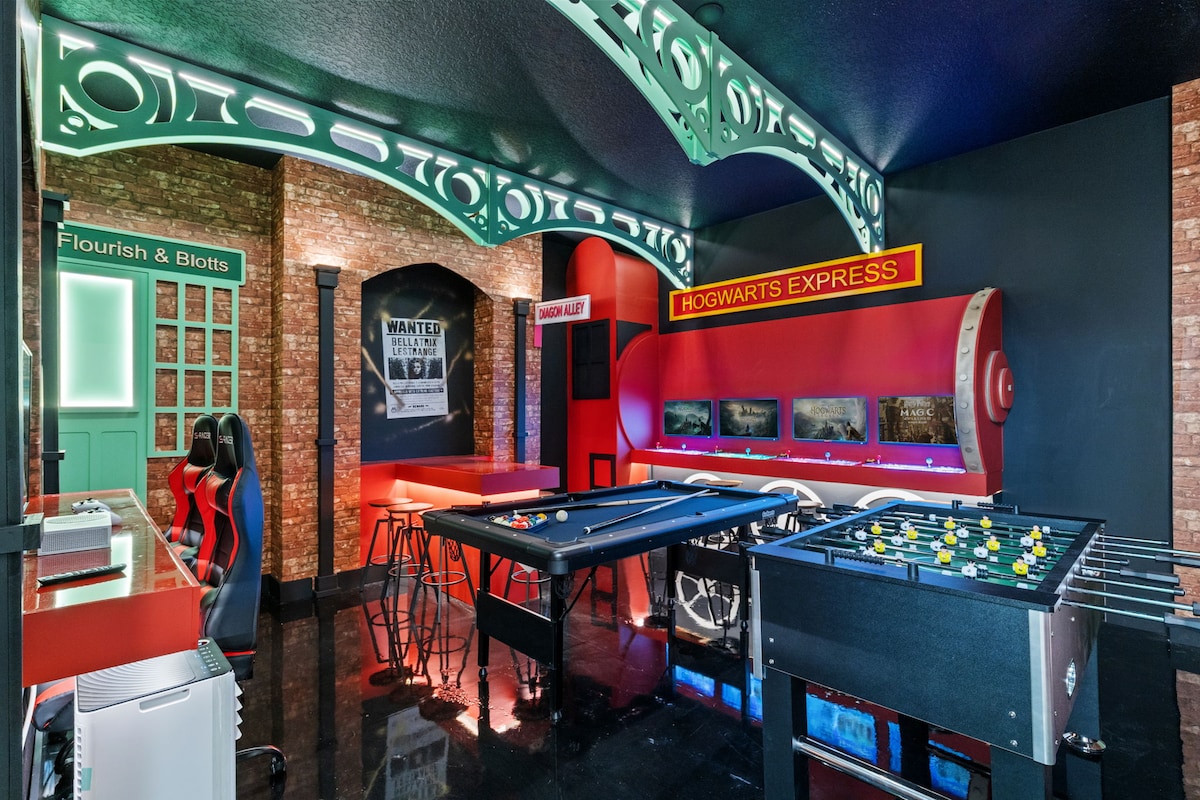 This special place is close to everything, making it easy to plan your visit. • Community: Paradiso Grande • 6 Bedrooms/6 Baths/Sleeps 16 • Disney - 10 miles • SeaWorld - 1.5 miles • ICON PARK - 4 miles • Convention Center - 3 miles • Universal - 7 miles • Exercise Equipment at the house • Fully Equipped Kitchen • Game Room with Arcade with 7500 Games, Pinball, Air Hockey • PRIVATE $35,000 HOME THEATER with 133" Screen and shakers on the seats • Business Grade Internet • Sauna • EV CHARGER