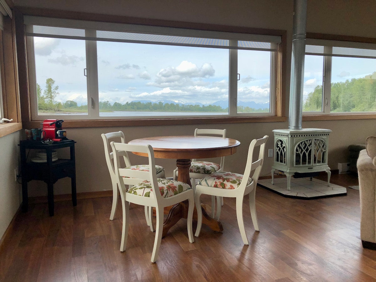 Sin entrada privada, estufa ni horno. Rampa + escaleras = ¡No son posibles las maletas enormes! Planta superior de la casa flotante; vivimos abajo +1 perro, 1 gato Flotando en el río Fraser, en un barrio familiar tranquilo y seguro, a solo un corto paseo en canoa o a pie de las tiendas de comestibles, cafeterías y restaurantes de Ladner Village. Fácil acceso en bicicleta a senderos de diques, playas, santuario de aves, BC Ferries, centros comerciales y granjas locales con pintorescas tiendas y cervecerías. El transporte público se detiene al otro lado de la calle, Vancouver está a 45 minutos en autobús.