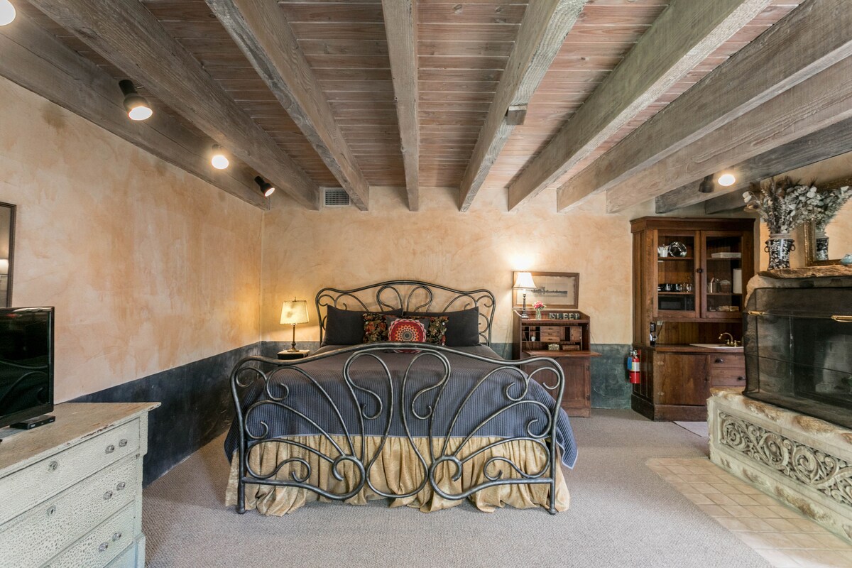 One of five accommodations on the property, El Jefe's Casa is an impressive two-story structure that is sure to captivate. The first floor includes an inviting king bed, dining area for two, and a half bath. Upstairs, you'll be impressed by a whirlpool tub, makeup station, and french doors leading to a small balcony. El Jefe's is also conveniently located just 1 block north of Main Street, so many attractions are within walking distance.