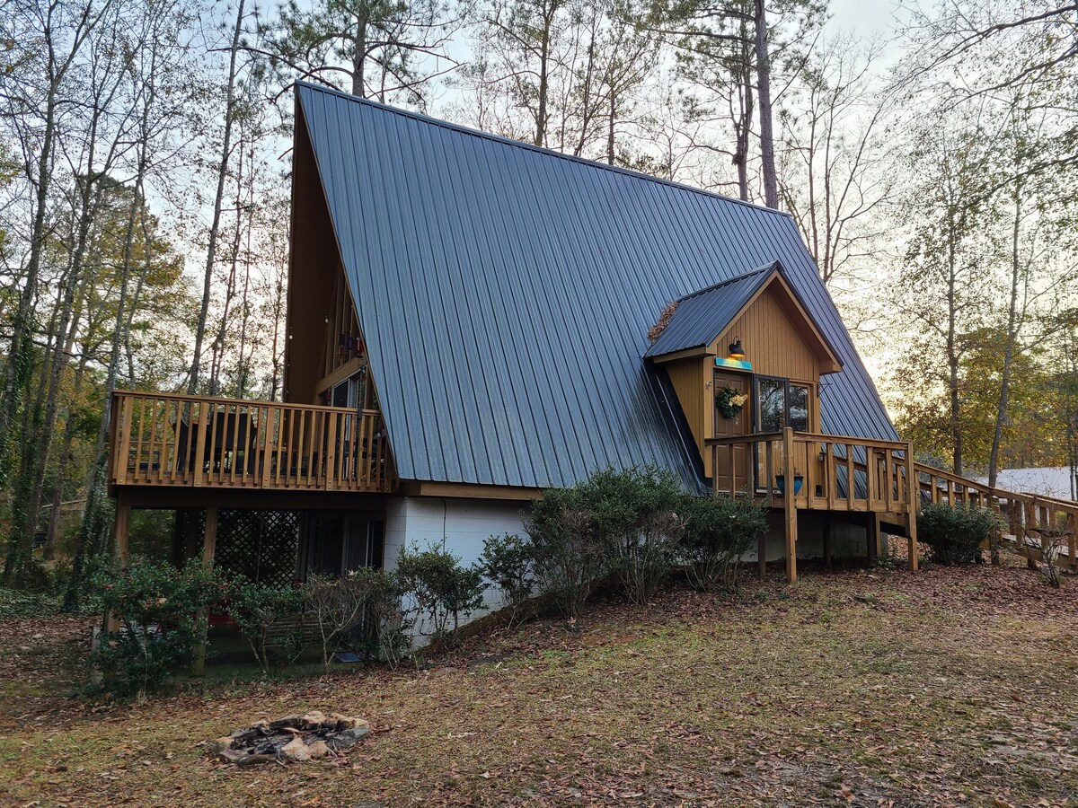 This A Frame was built in the early 70s. Enjoy a fully equipped kitchen, a deck, an outdoor patio, two living areas, and more. Enjoy the peaceful neighborhood and surroundings. Walking distance to downtown Pine Mountain and a few minutes walking or biking to Callaway Gardens. Nearby attractions include several wineries and breweries, FDR national park, the Wild Animal Safari, and more. This is an old rustic house. If you leave the doors open, bugs may come in as we are in the woods.