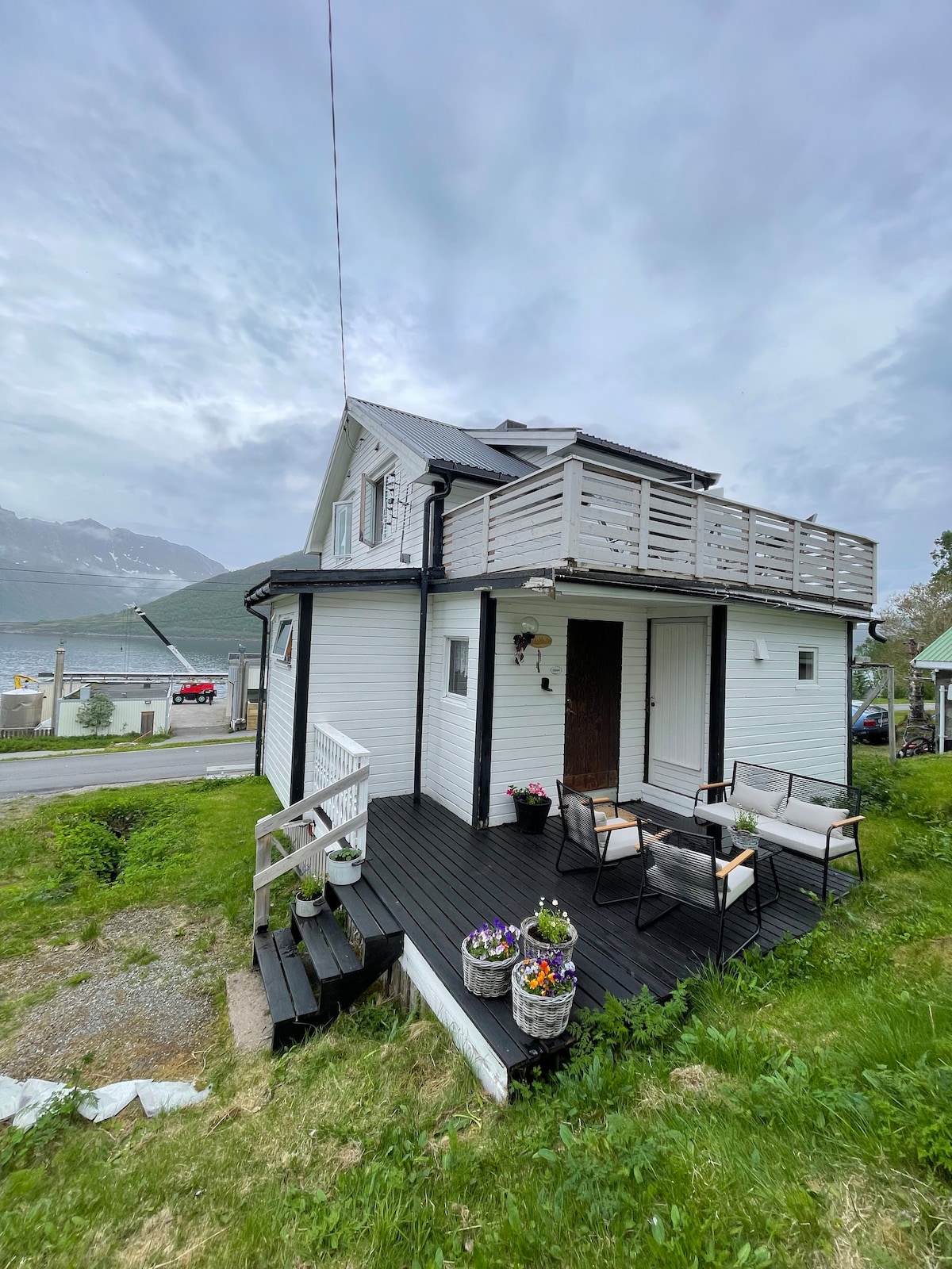 Elegante, acogedor apartamento de 90 m2 con gran terraza. Escalera del baño justo afuera del apartamento para el baño de la mañana. Camas hechas, toallas, muy bien equipadas. Gran comedor, cocina bien equipada, sala de estar, todo con ambiente hogareño y vistas increíbles. Hay mucho espacio para ropa, equipo de senderismo/esquís. Este es uno de los 3 departamentos que alquila la coanfitriona (Lena-Elise), que está justo al lado, al lado. Senja Suite Apartment 1, 2, 3 A menudo conocerás a este coanfitrión.
