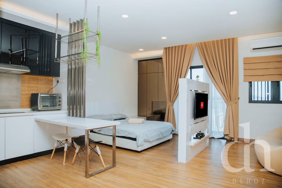 Este Lux Studio es un diseño contemporáneo que se caracteriza por la simplicidad, el minimalismo y la funcionalidad. Las características de este estilo de diseño incluyen líneas limpias y curvas, materiales naturales, contrastes marcados, tonos fríos y atención a la calidad. Puedes escapar de la ciudad para tener un viaje tranquilo, alegre y relajante en un apartamento de muy baja densidad. Soho Trio Permai es un edificio de desarrollo mixto con unidad comercial. A poca distancia a pie de la Escuela Internacional Alice Smith, bancos y restaurantes.