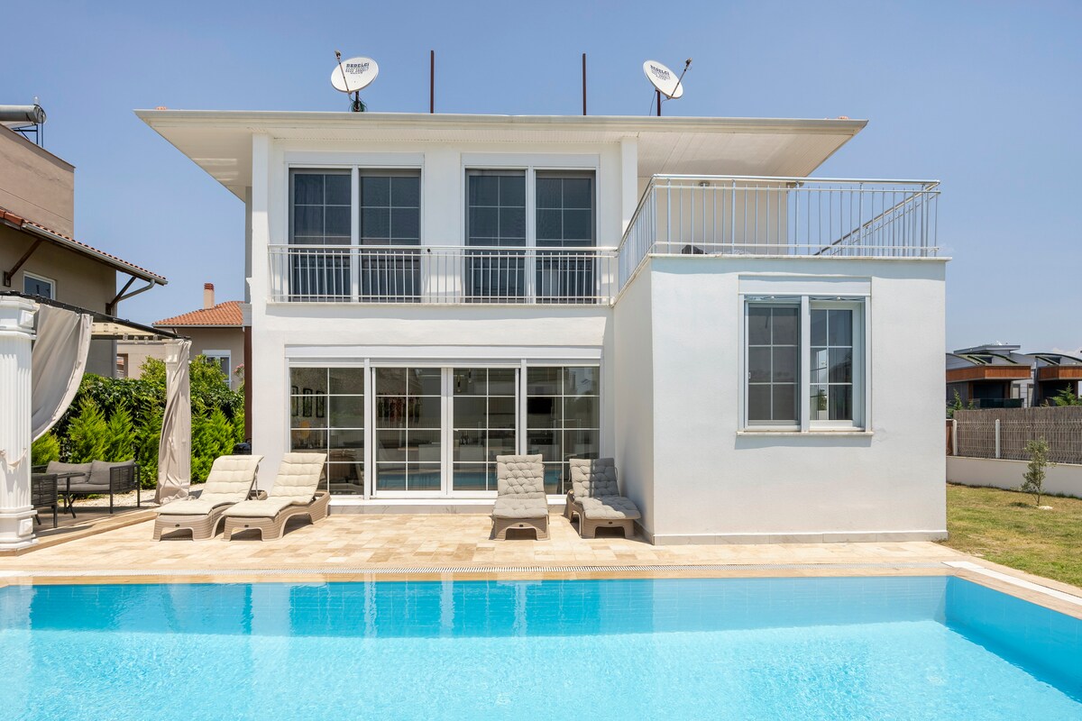 Nuestra villa vacacional se completó en 2022. Ya sea para vacaciones de golf, vacaciones en familia o un viaje con amigos; ¡Belek (Kadriye) es un lugar hermoso para pasar unas vacaciones excelentes! La playa pública de arena está a solo 1,5 km. Innumerables lugares te invitan a visitarlo. ¡Te deseamos unas vacaciones maravillosas en nuestra moderna y elegante Villa Güneş!