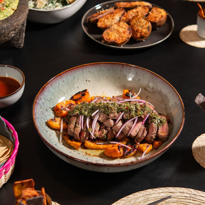 Open-Air Mexican Grill Feast es una experiencia gastronómica premium a fuego abierto diseñada para compartir y celebrar. Todo se cocina al fuego vivo, desde verduras y maíz a la parrilla hasta cortes de carne y mariscos de primera calidad, terminados y servidos al estilo familiar en la mesa. Con sabores atrevidos, fuego visible y un ambiente relajado, esta experiencia se centra en el disfrute, la generosidad y el placer de cocinar y comer juntos.