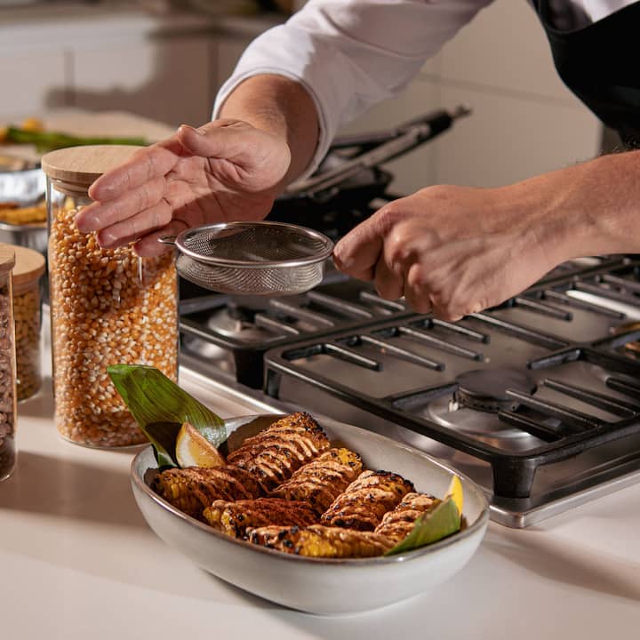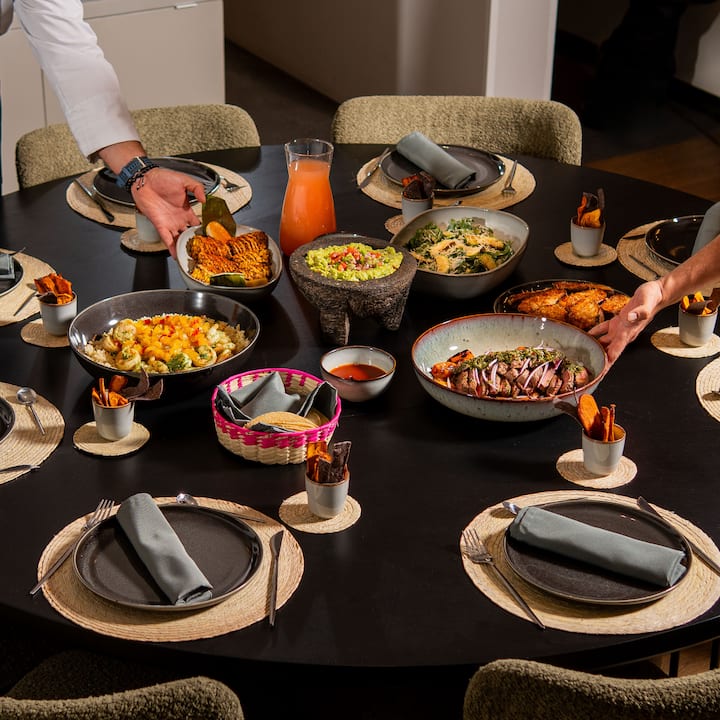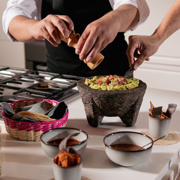 Fuego, maíz y territorio explora los cimientos de la cocina mexicana a través del maíz, el fuego, el equilibrio y el ritual. Esta experiencia guiada, de estilo familiar, se centra en cómo se construyen los sabores, desde verduras asadas al fuego y ceviche fresco terminado en la mesa, hasta un plato principal de cocción lenta inspirado en la cocina casera. Diseñado para entender la cocina mexicana más allá de las recetas, este es un lugar relajado y reflexivo donde la comida, la técnica y la cultura se unen.