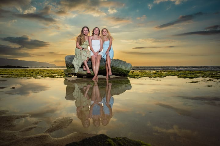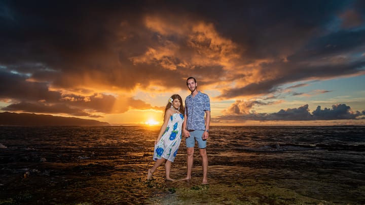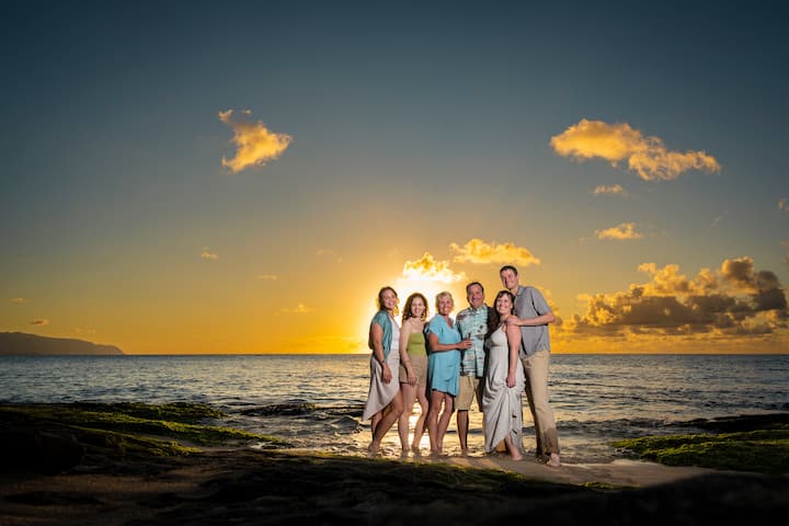 ¡Mi reserva más popular! Perfecta para casi todo el mundo, incluidos grupos de hasta 9 personas. 60 minutos durante la hora dorada para conseguir fotos a la luz del día y al atardecer en un lugar impresionante y escondido de Oahu.