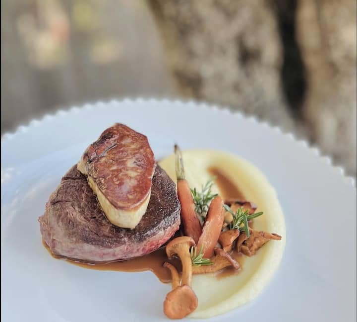 Descubra nuestro menú Signature 2025 con un Carpaccio de Bar como entrada, un bistec Rossini como plato principal y una Pera de bolsillo como postre. Una elección refinada para una experiencia culinaria de verano inolvidable.