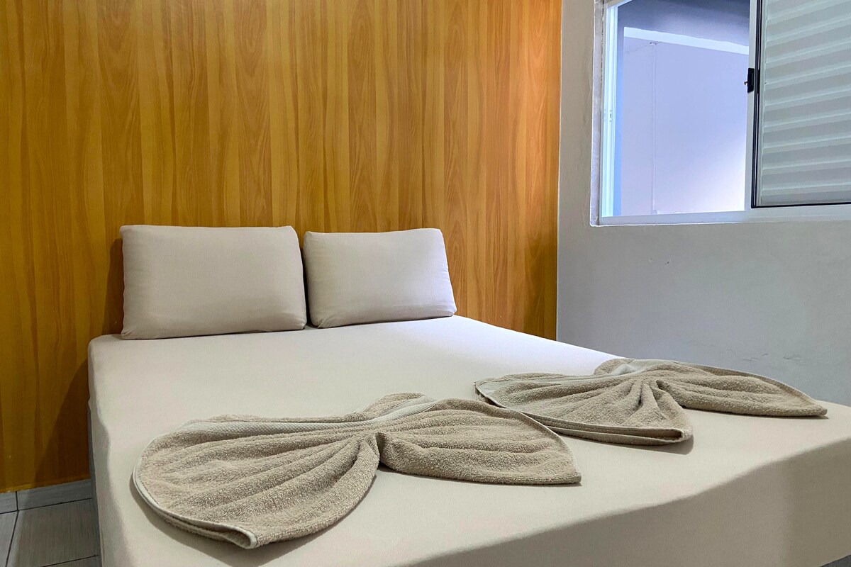 The house has 2 bedrooms, a living room and a well-equipped kitchen. The place is very calm, ideal for couples or families looking for comfort and tranquility. Great for those who need to stay for long-term hospital care or not, at the regional hospital, due to its COST x BENEFIT Located 2.5 km from the center The city is in the center of the river valley, between Cananéia and Iguape Great for those who want to enjoy nature and fishing in the region. Home Office with 150mb Internet Fiber