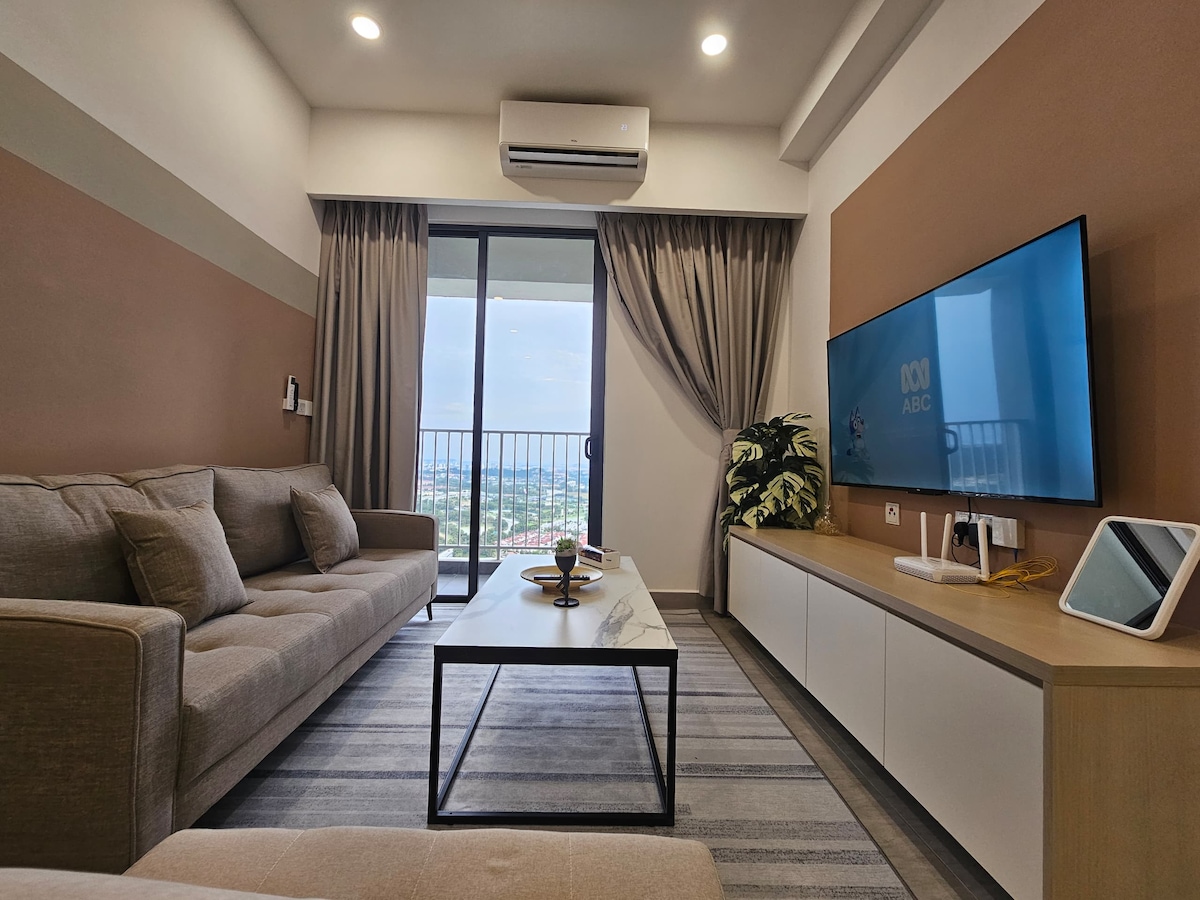 Diviértete con toda la familia en este elegante lugar. Este moderno apartamento de 3 dormitorios combina un diseño limpio con una comodidad acogedora, ofreciendo mucho espacio para relajarse, recargar pilas y volver a conectar. Disfruta de la estética minimalista y espaciosa, la luz natural y la atención ¡Este es el último edificio en Setia Alam! Como está a 5 minutos a pie del Centro de Convenciones de Setia City (SCCC) y del centro comercial Setia City. Perfecto para viajes de negocios y alojamiento familiar de lujo, ya que ofrecemos videojuegos de Nintendo Switch.