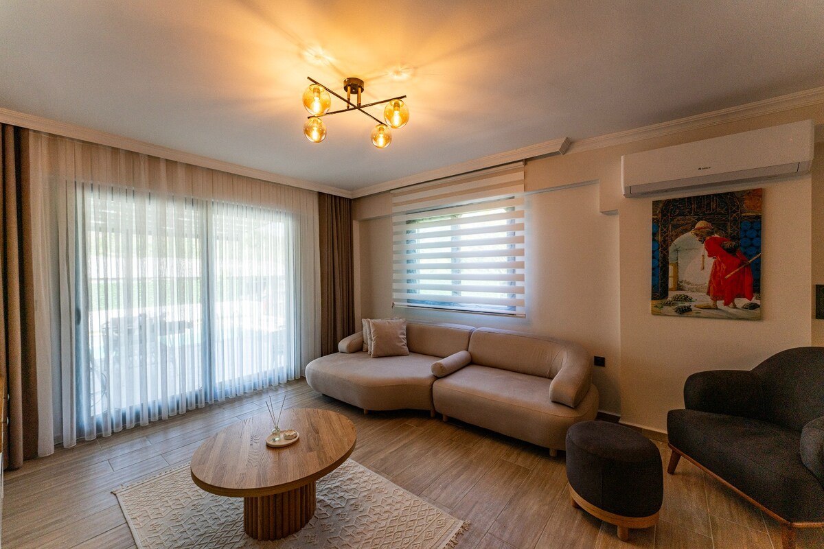 Si te hospedas en este lugar céntrico en este espacio tranquilo y elegante, estarás cerca de todo en familia. Muchas comodidades como piscina, barbacoa, jacuzzi, jardín privado han sido consideradas para ti. A 4 km del centro de la ciudad, a 5 km de la costa, a 12 km de la costa del Mar Muerto, a 700 metros de la tienda de comestibles y a 12 km de Kayaköy, hay dos sofás cama que se abren y se convierten en una cama, si vienes sin coche, si vienes sin vehículo, te ayudaremos en el traslado, que tengas unas buenas vacaciones, si te sientas y relájate.