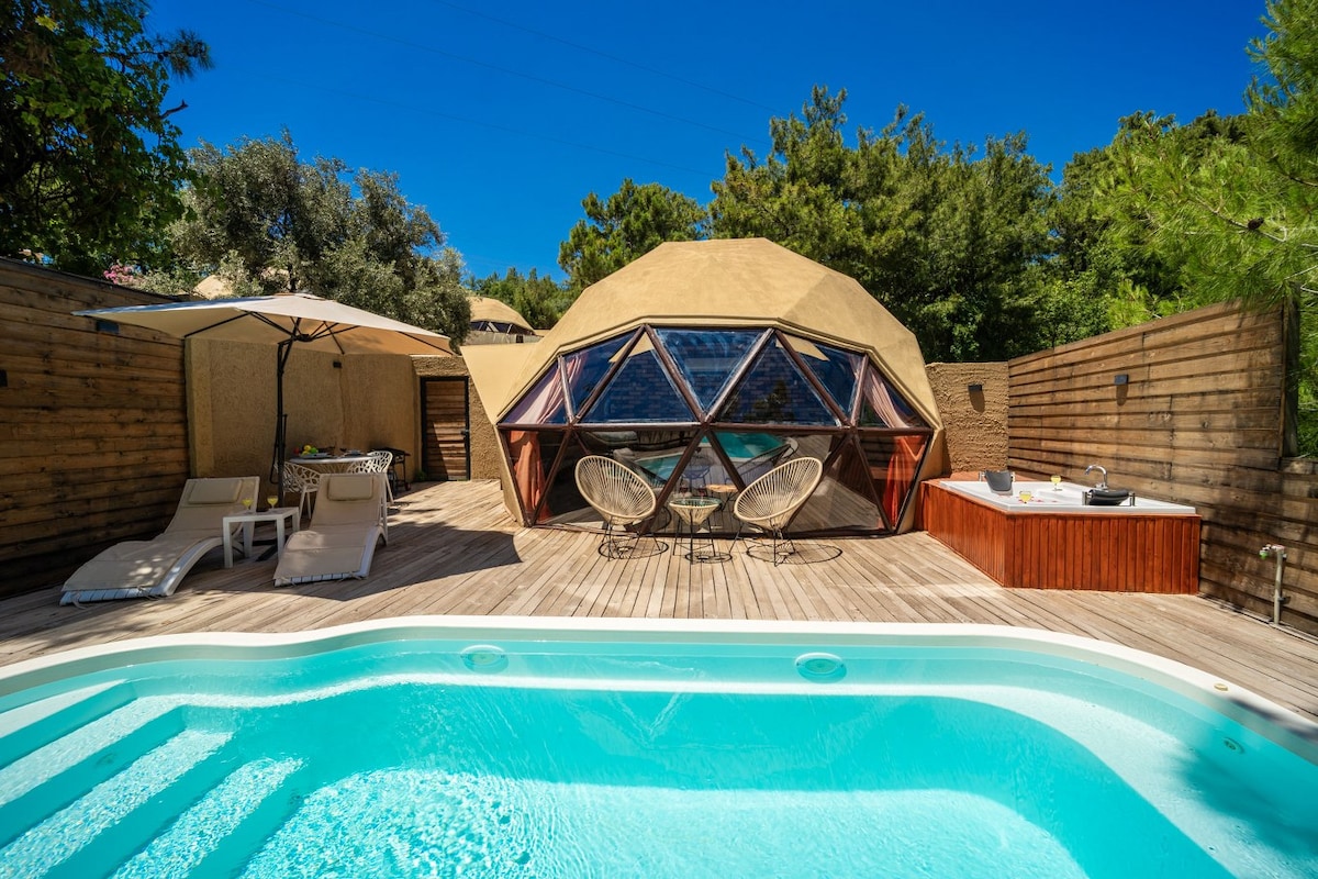 Glamping en Domo para 2 personas con piscina climatizada y jacuzzi