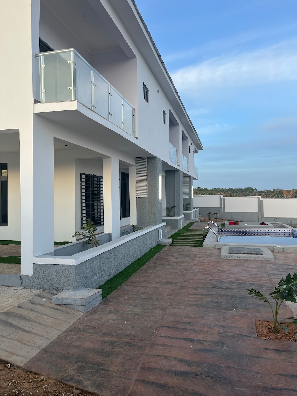 Situado en una zona tranquila. 2 dormitorios en suite, 2 salas de estar con aseo, internet y TV vía satélite, cocina funcional, recinto vallado con amplio aparcamiento y zonas de estar al aire libre. Área de estudio dedicada opcional. Energía de respaldo, agua potable y lavadora disponibles. Ubicación céntrica para llegar al centro de la ciudad de Jos y Bukuru con facilidad.