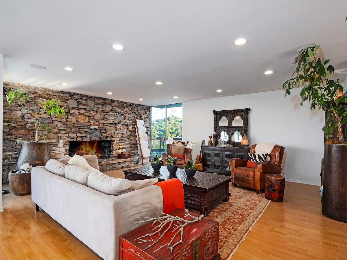 Galardonado con el premio Airbnb PLUS (calidad y comodidad verificadas) durante seis años consecutivos. Este refugio ultrapacífico en la ladera de una colina, bañado por la luz natural, fue frecuentado por Orson Welles en los años 70. Empieza el día con un café en el balcón del dormitorio. Por la noche, reúnete alrededor de la chimenea al aire libre o disfruta de una copa de vino en la terraza. Con prácticamente ningún ruido de tráfico, es difícil creer que estás en Los Ángeles.