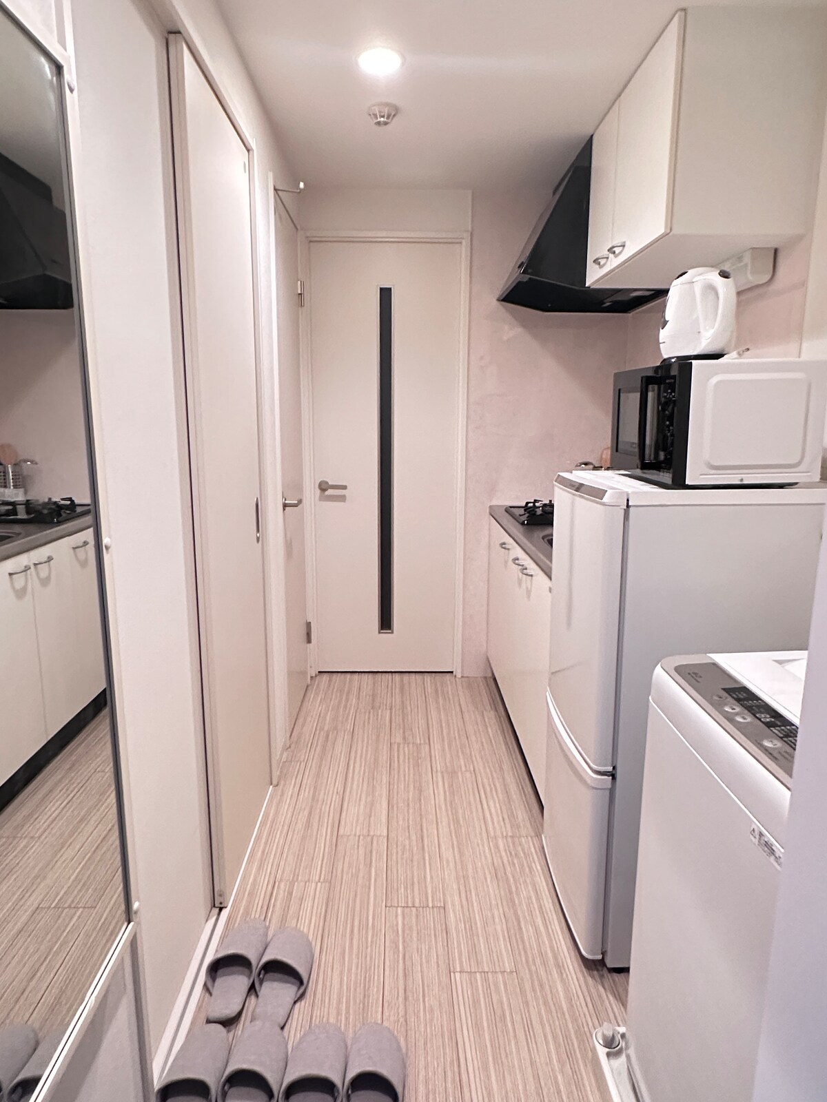 Este condominio fue renovado y reabierto en febrero de 2025. Convenientemente ubicado a solo 3 minutos a pie del famoso santuario Fushimi Inari Taisha, este condominio tiene un diseño elegante basado en el estilo moderno japonés y un ambiente acogedor y hogareño. Esta habitación tiene una habitación de estilo japonés y una sala de estar. El baño y el inodoro están separados y se mantienen muy limpios. Disfruta de un momento de relajación rodeado del encanto de Kioto.
