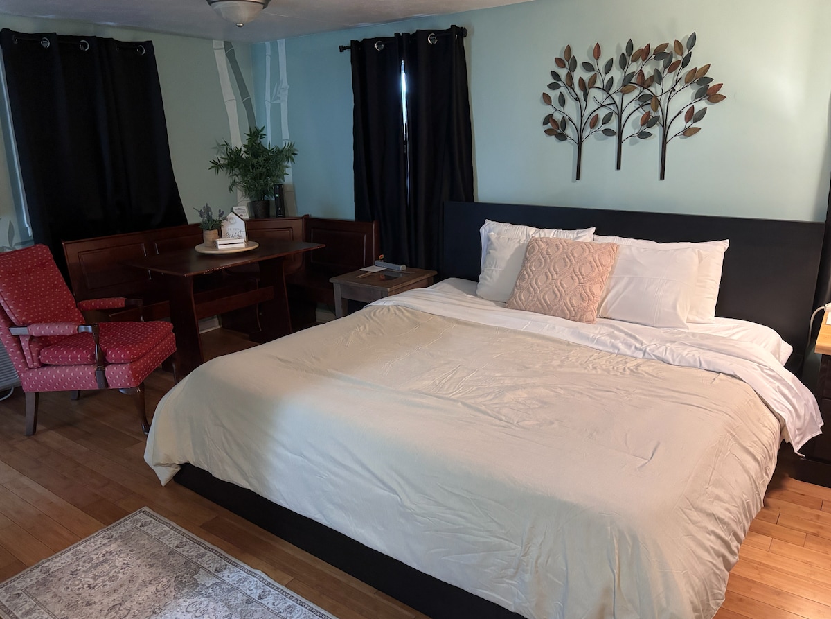 Enjoy a big comfortable king size bed in this studio style cottage for 2. Come relax or "work away from home." With High Speed Internet, you don't have to worry about slow connection! We're located two blocks from Historic Independence Square and a short 20 minute drive to downtown Kansas City. Only 10 minutes away from the Royals and Chiefs Stadium and 5 minutes from the Truman Library! Important. Please don't book if you want to bring a pet, or plan on smoking in or on the property.