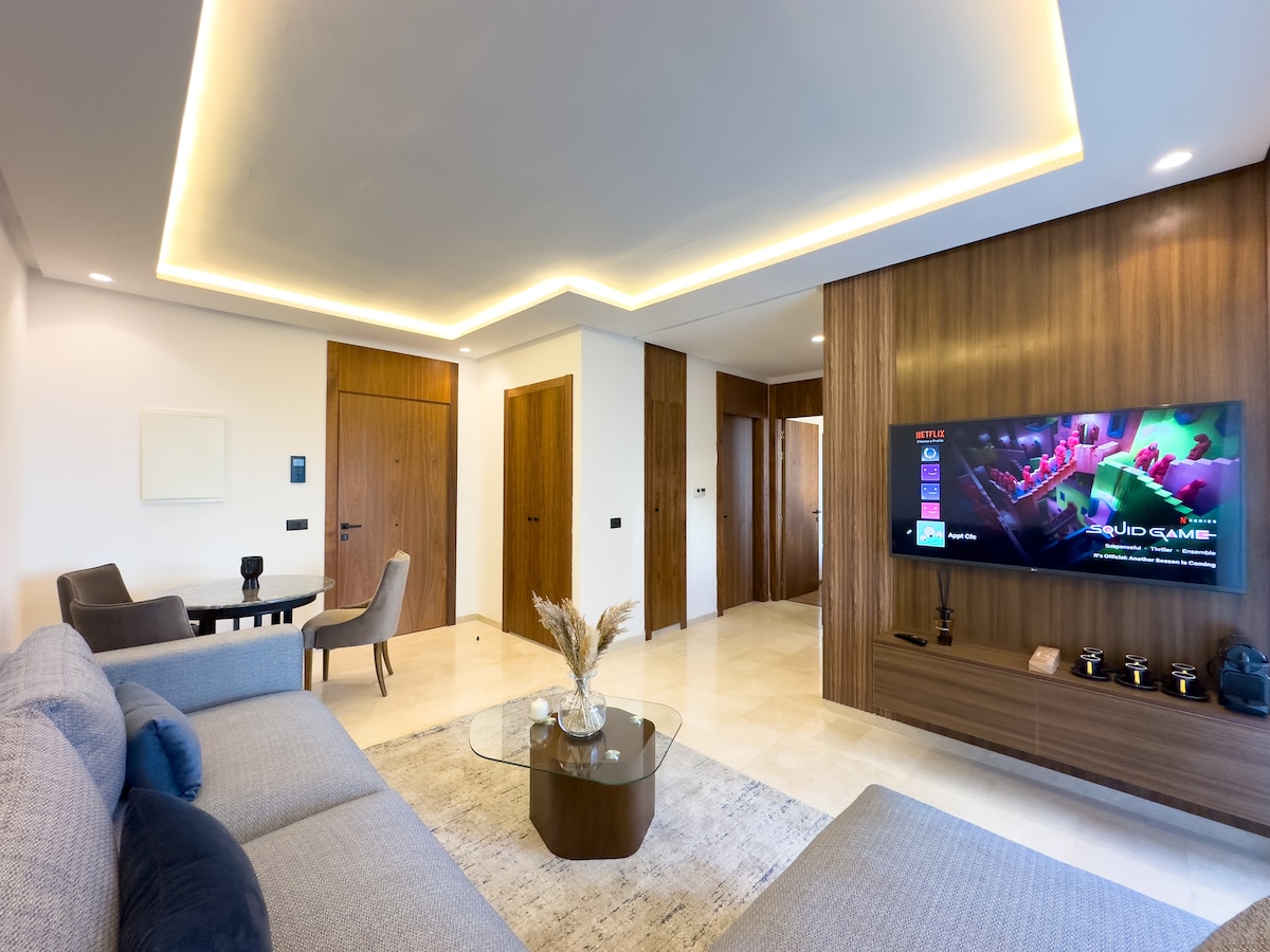 Nuestro elegante apartamento de Casablanca ofrece una experiencia inolvidable para los viajeros que buscan comodidad y elegancia. Ya sea que estés aquí por negocios, para explorar la ciudad o simplemente para relajarte, nuestro alojamiento será tu oasis de bienestar. Estarás situado en el corazón de un barrio elegante de Casablanca, rodeado de tiendas de alta gama, restaurantes gourmet y cafés de moda. Las principales atracciones de la ciudad, como la mezquita Hassan II, la Corniche y el centro de la ciudad, son fácilmente accesibles desde el apartamento.