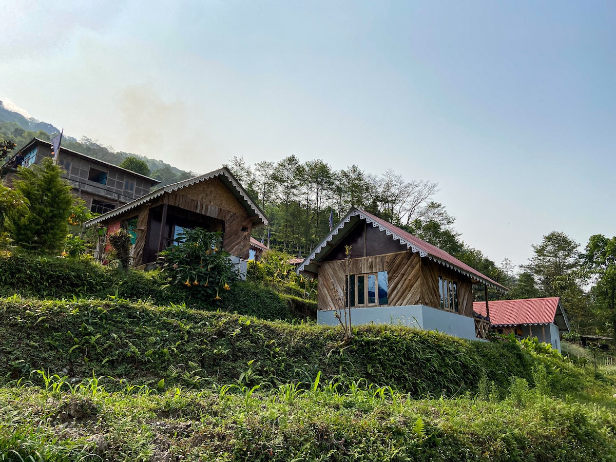 Es una casa de familia fresca situada en su pueblo de montaña homónimo, en el distrito sur de Sikkim. El principal atractivo de esta prístina aldea de montaña es una fuente termal natural ubicada en las orillas del río Rangeet. Es muy popular entre los lugareños y los turistas por igual, debido al poder curativo de las aguas ricas en minerales. La casa de familia tiene seis casas de campo separadas de una sola habitación. El interior y el exterior están decorados con bambú natural y madera local, para preservar la sensación de la naturaleza.