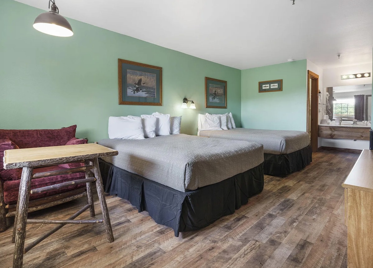 ¡Disfruta de la comodidad de tu hogar en este elegante condominio de un dormitorio con cocina recientemente actualizada! Está perfectamente ubicado en el aislamiento de 300 acres boscosos, a solo una milla de Silver Dollar City. ¡Todas tus atracciones favoritas de Branson están a poca distancia en auto! Disfruta de un paseo por nuestros senderos privados que conducen a un lago de 5 acres o aprovecha la piscina de temporada, el parque infantil y la cancha de béisbol. Si las fechas que buscas no están disponibles, solicita un enlace a nuestra propiedad hermana The Aviary.