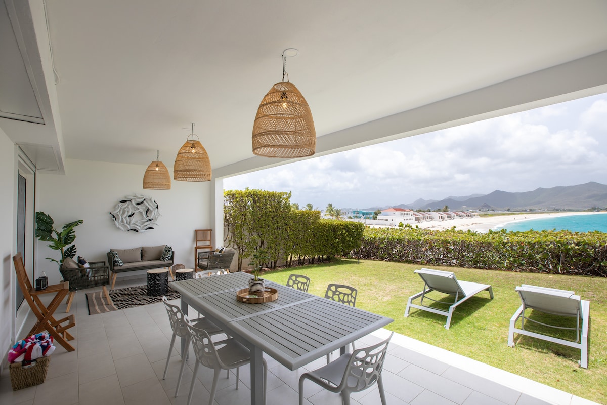 Un loft excepcional frente a la playa en Grand Case Beach, que ofrece majestuosas vistas al mar y una ubicación privilegiada sobre el icónico Rainbow Café. En temporada alta, un ambiente elegante y moderno marca la pauta hasta alrededor de las 11 p.m. Las tumbonas se pueden reservar directamente o a través de nosotros, pero los huéspedes que reserven con nuestra ayuda disfrutarán de toques privilegiados. Un refugio luminoso y sofisticado a solo unos pasos de los mejores lugares de Grand Case.