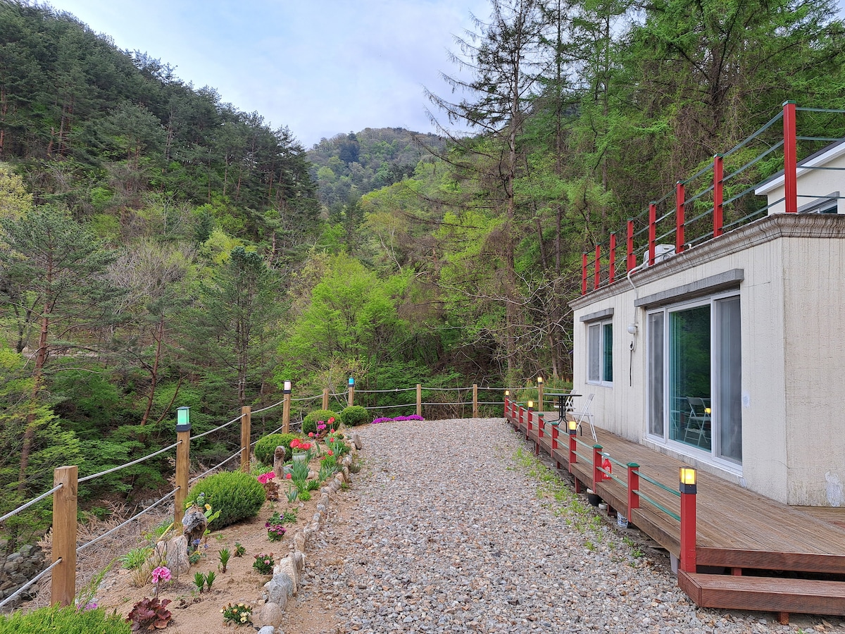 [Inje Exclusivo/60 pyeong de superficie real] Sanación en el bosque con un valle privado y chimenea, Forheu