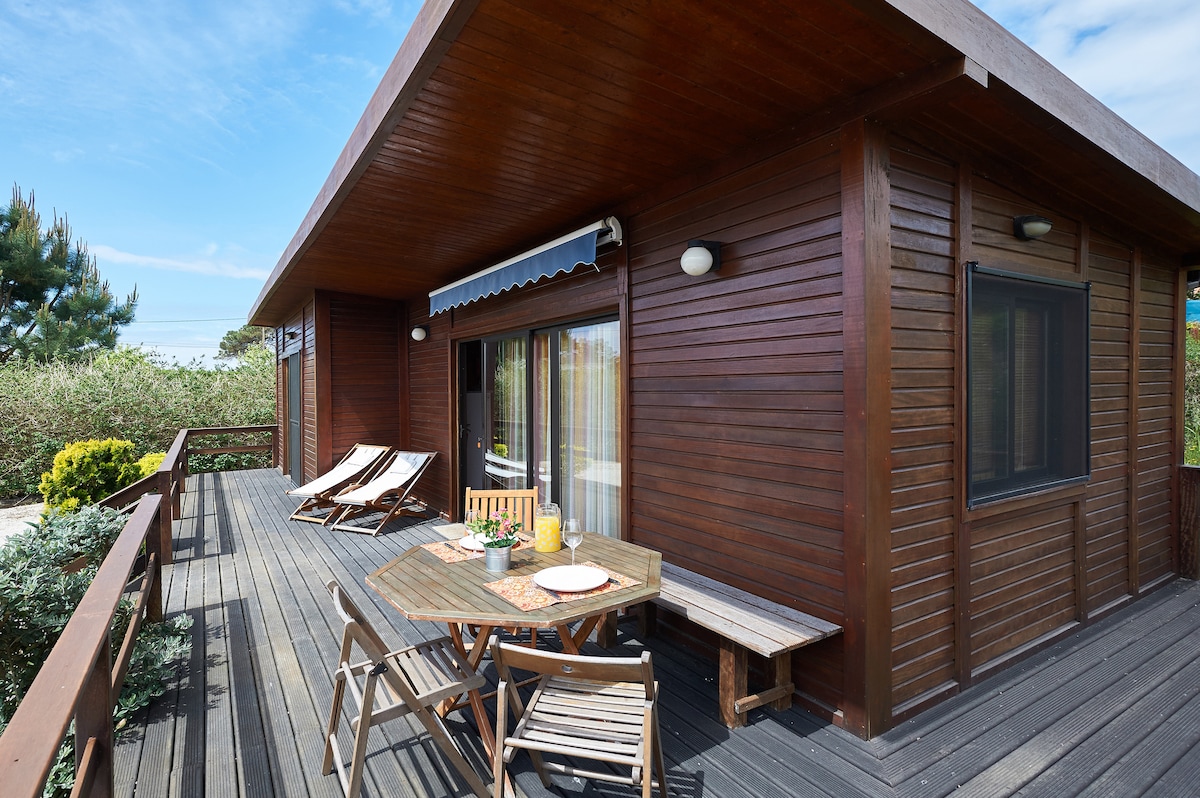 'Maresia': puedes oler, escuchar, ver, sentir y saborear el mar en este hogar creado con amor con vistas al océano. Hermoso chalet levantado de madera azul, estilo escandinavo, cómodamente amueblado, con balcón, terraza, barbacoa y piscina dentro del jardín amurallado. Vistas al mar y atardecer. Impresionante ubicación cerca de la cima del acantilado, en una zona muy tranquila y pintoresca. Paseos costeros, vida silvestre, pinos. Acceso a playas de arena limpia en Sao Juliao, el paraíso del surfista. Cerca de tiendas y restaurantes locales.