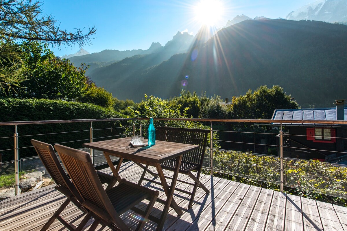 Bonito chalet para dos personas, idealmente ubicado en Chamonix, en el lado soleado del valle, con una vista impresionante sobre el Mont Blanc, en un jardín bastante de 4 000 metros cuadrados, cerca de todo (centro de la ciudad, instalaciones de esquí y rutas de senderismo). Una habitación con cama doble, baño con ducha y un bonito balcón soleado (pero sin cocina).