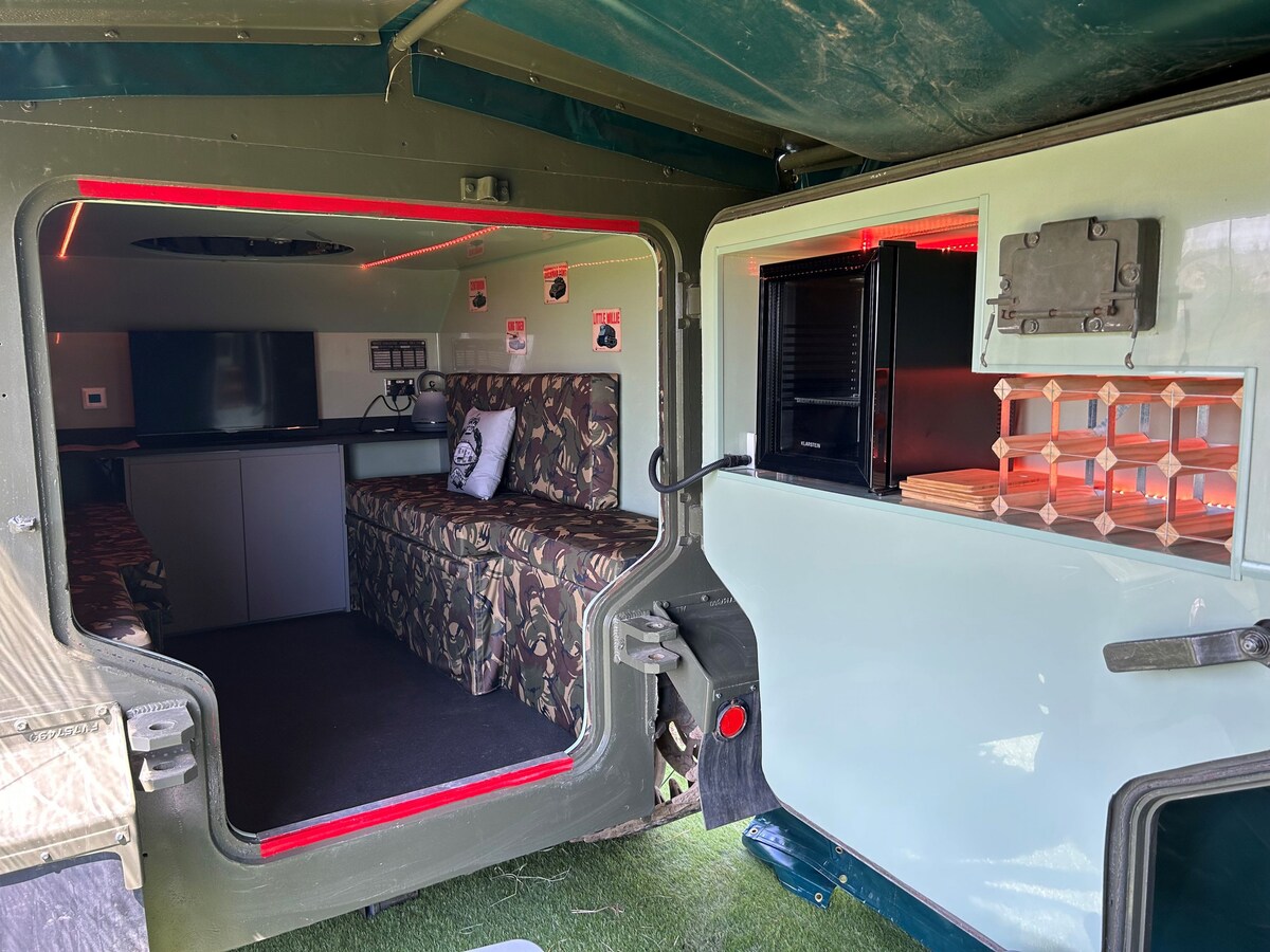 Nuestro tanque Samaritan es un antiguo vehículo militar que se ha convertido en una cápsula de glamping para 2 personas. Otros alojamientos están disponibles para reservar en conjunto si hay más de 2 personas en el grupo. Se admiten mascotas por un cargo de 20 libras por mascota. Ten en cuenta que es posible que sea necesario cargar a las mascotas en el alojamiento.